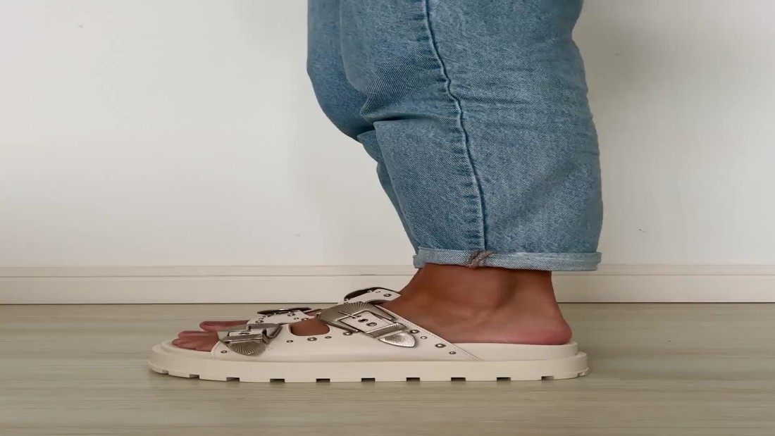 A Birken Western Off-White MIST é a definição de statement shoe. Une o conforto icônico da papete com a ousadia das maxifivelas western e o toque rocker das tachas, criando um modelo cheio de atitude.