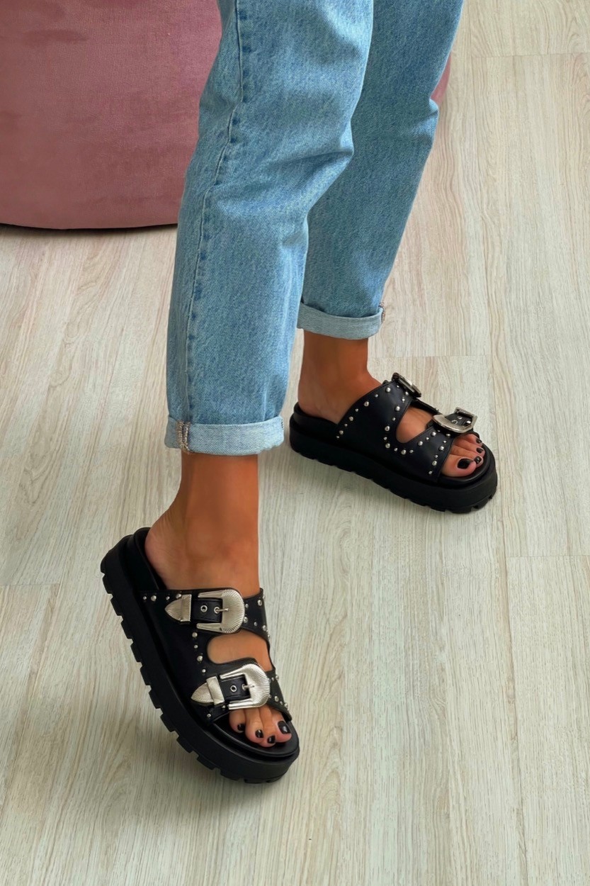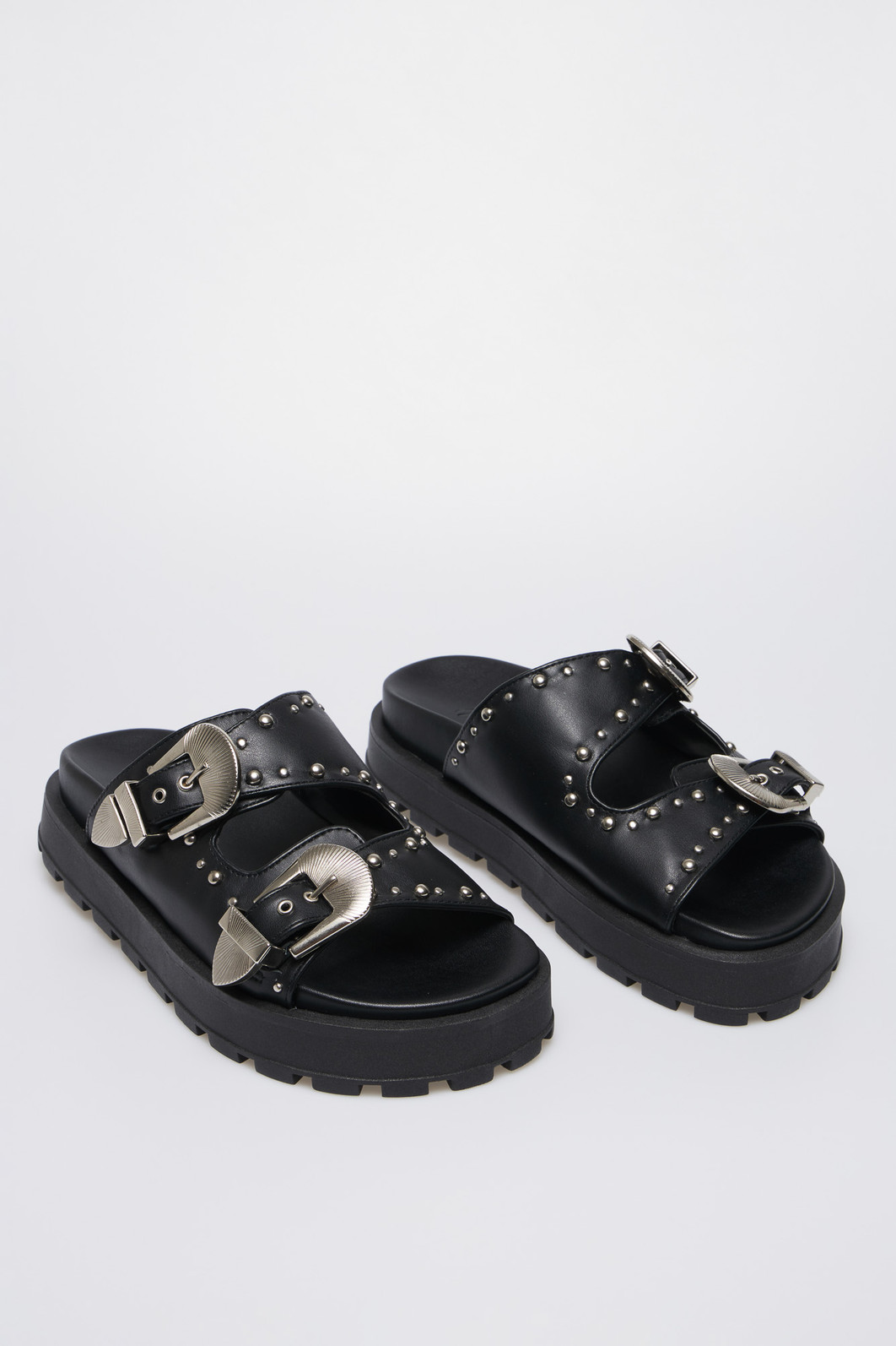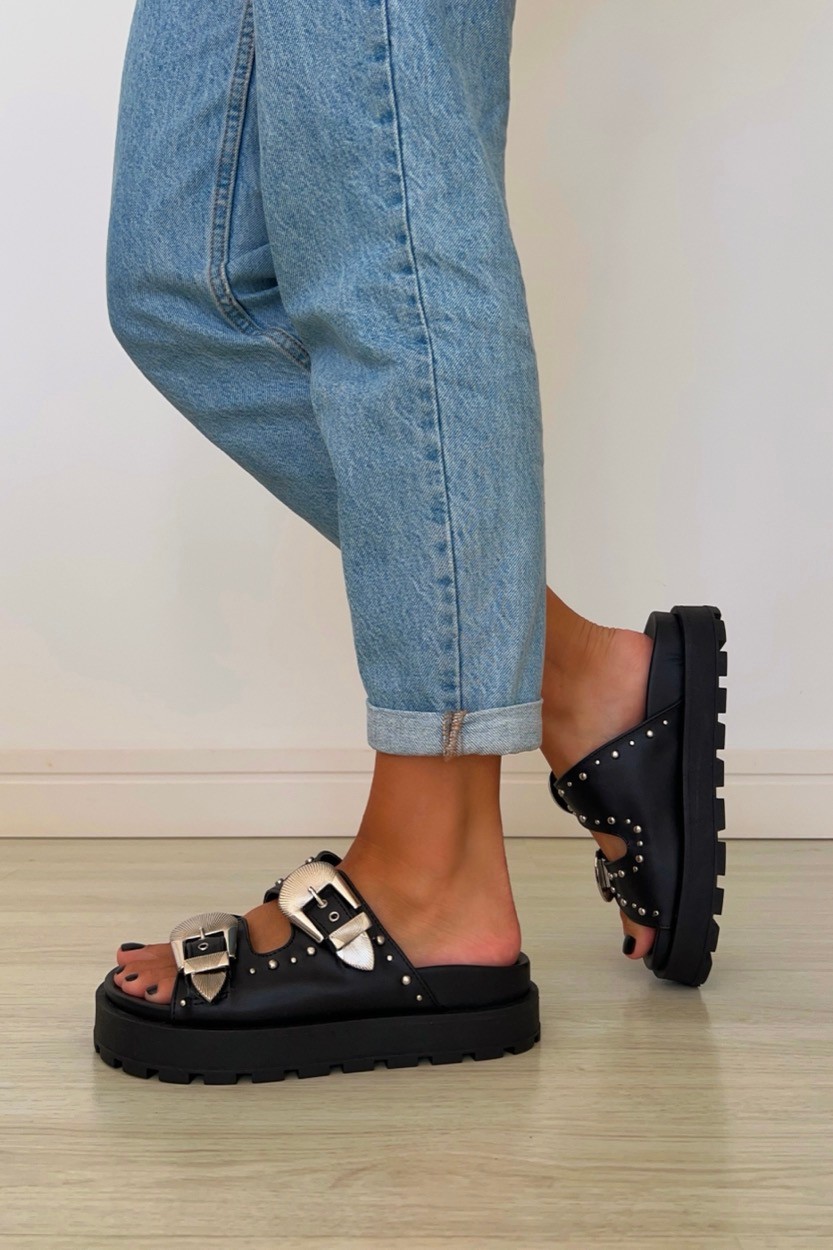 A Birken Western Preta MIST traduz ousadia e estilo em um design robusto e moderno. Inspirada na clássica papete, ganha personalidade com as maxifivelas western e as tachas que contornam as tiras.