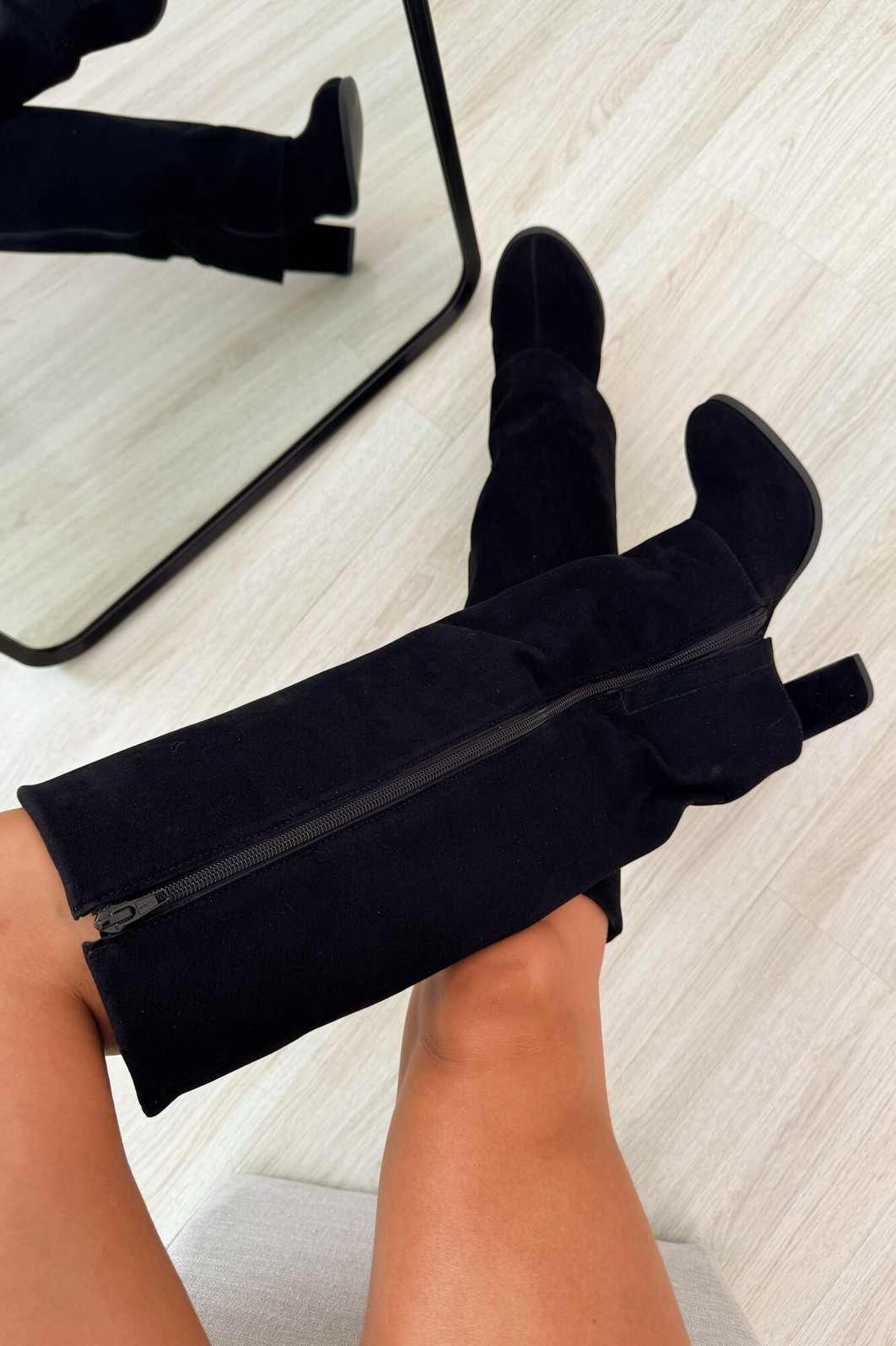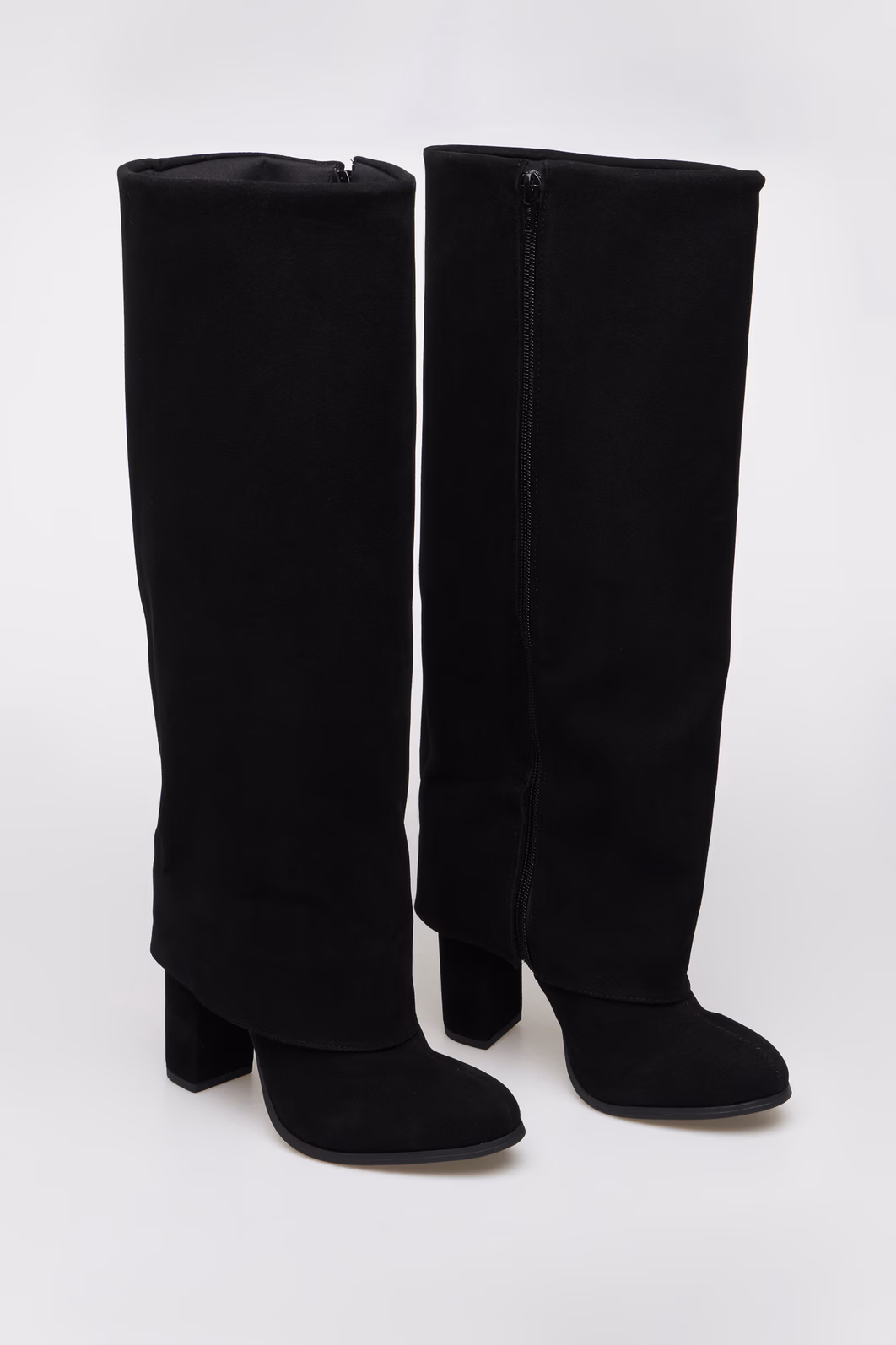 A Bota Anna Preta MIST é um verdadeiro ícone de elegância moderna. Seu design marcante combina a imponência do cano longo com um charmoso efeito dobrado (slouchy), adicionando um toque despojado e super atual à silhueta clássica.