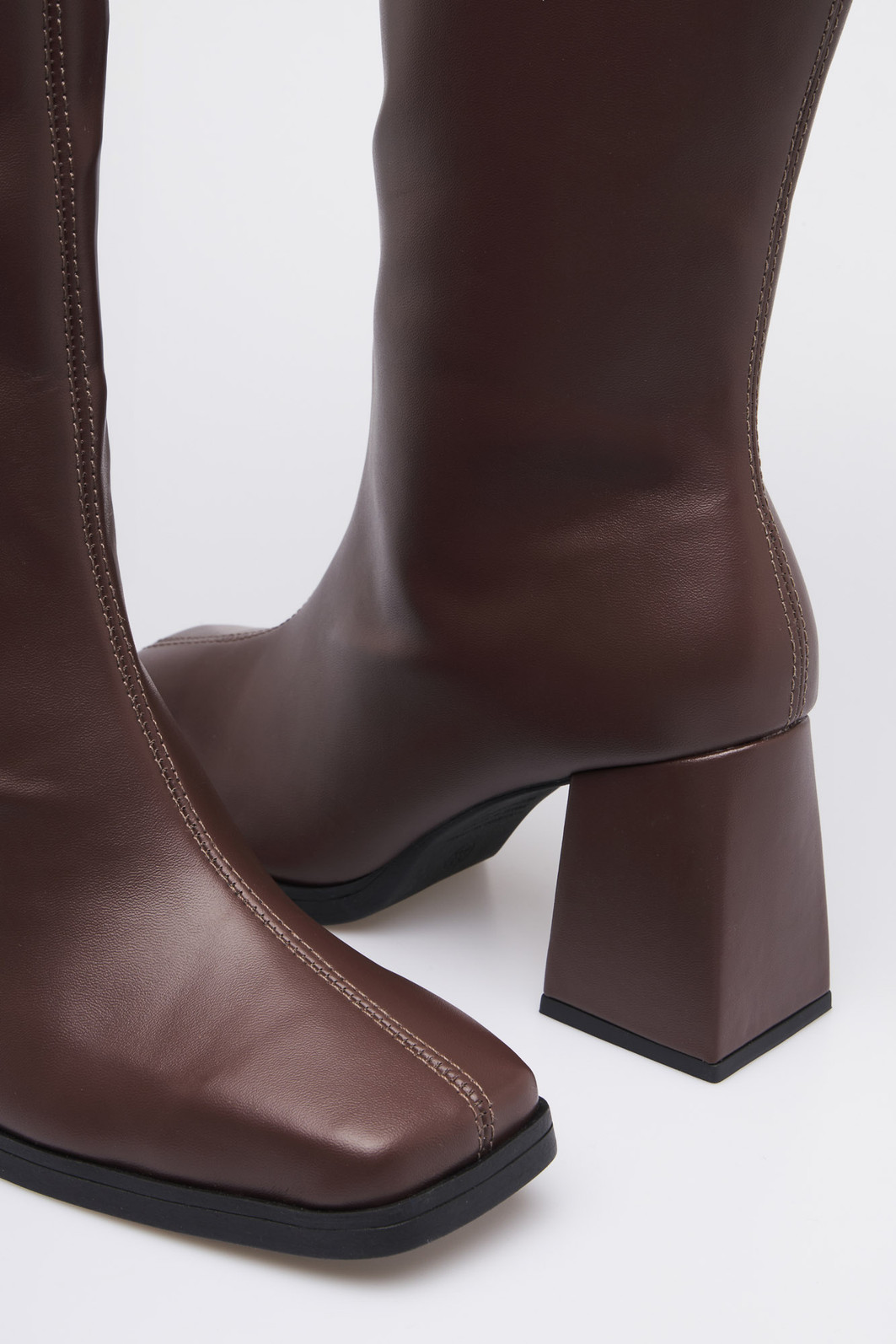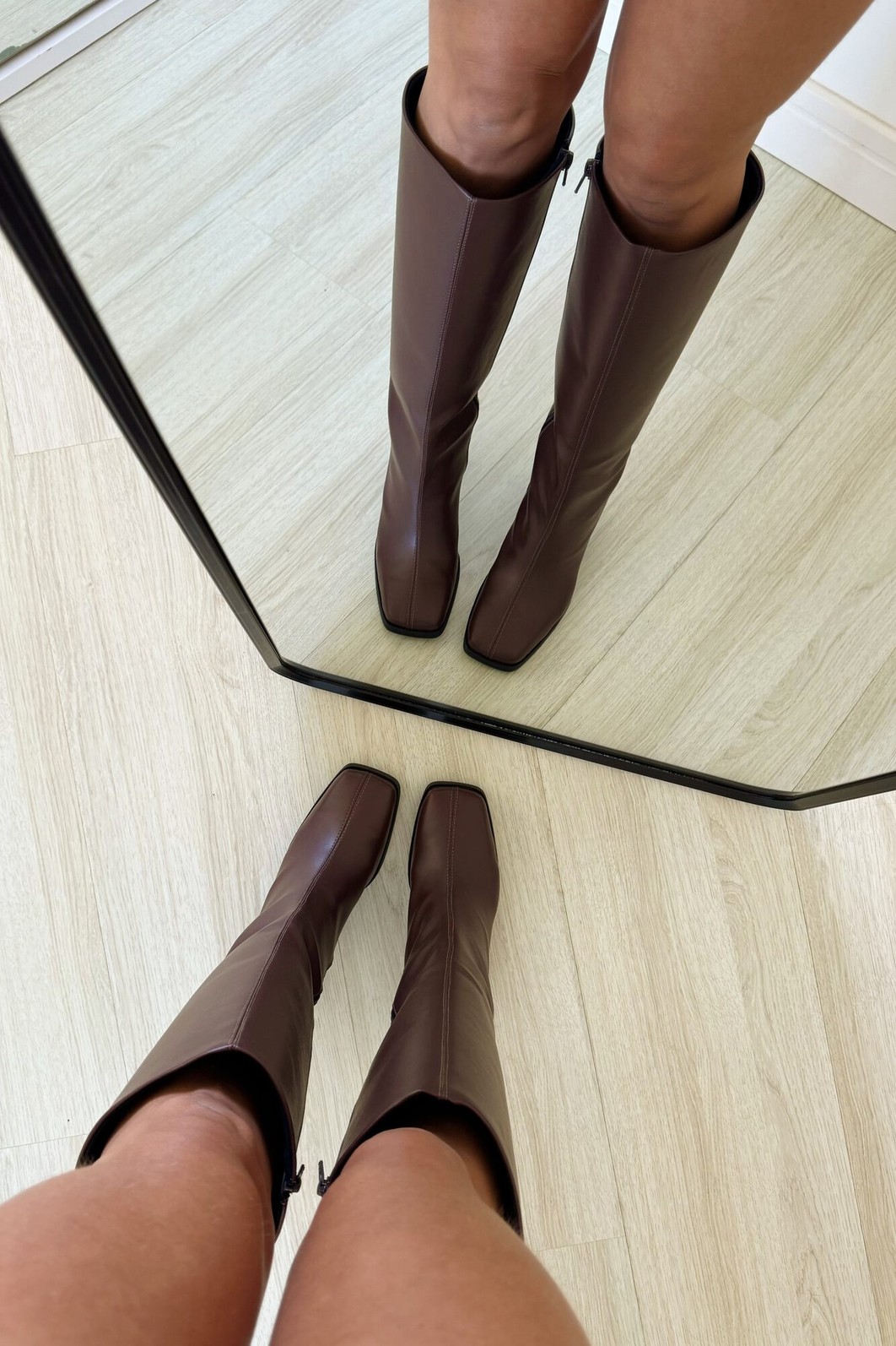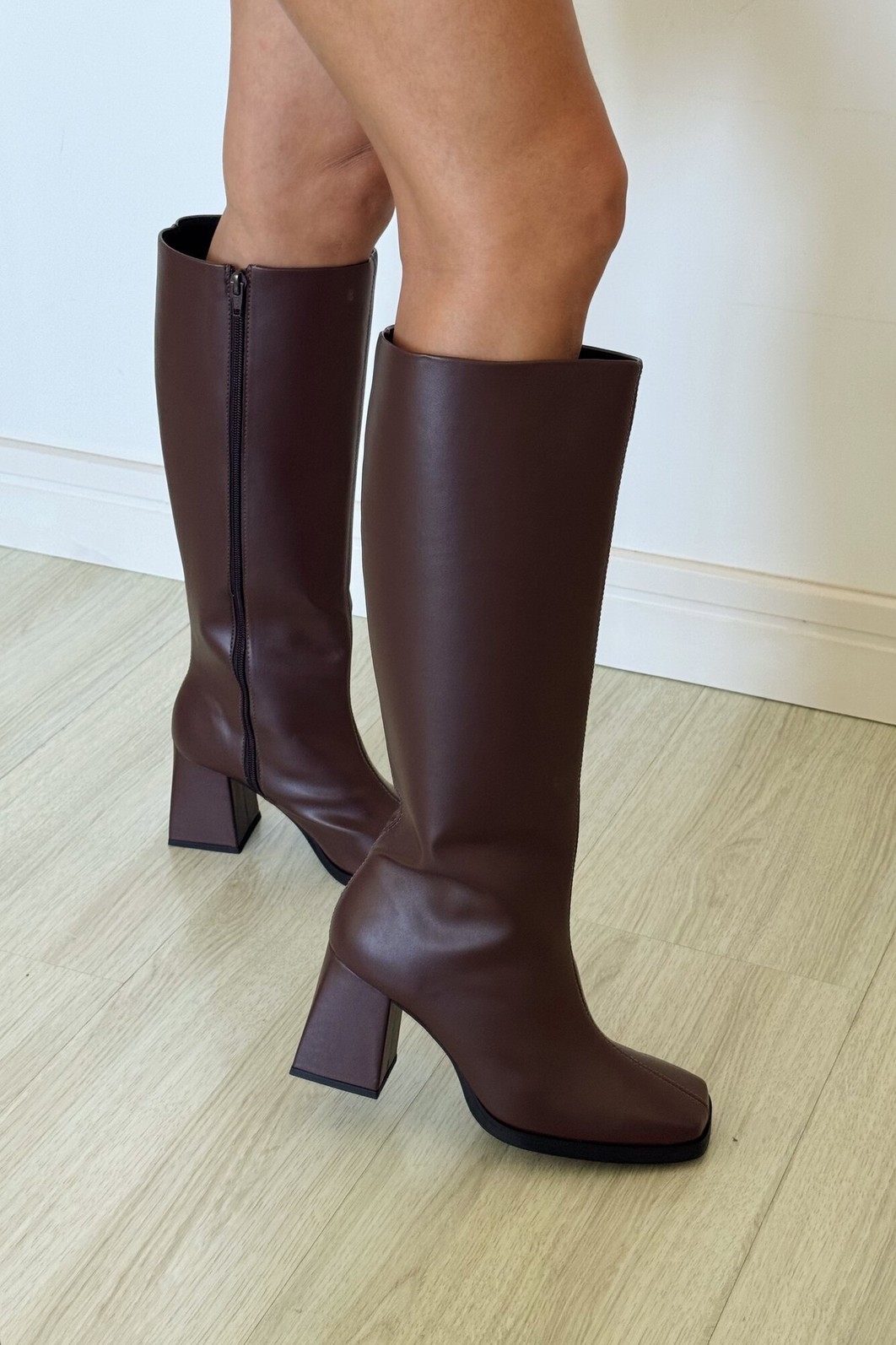 A Bota Antonela Marrom MIST é a personificação da elegância moderna. Seu cano alto aliado ao salto bloco geométrico garante estilo e conforto, enquanto o bico quadrado entrega um toque fashionista atual.
