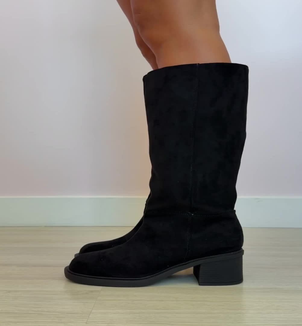 A Bota Emily Preto MIST eleva suas produções de inverno com presença e conforto. Confeccionada em material com acabamento tipo camurça (suede), oferece um toque macio e um visual sofisticado e quentinho para os dias frios.