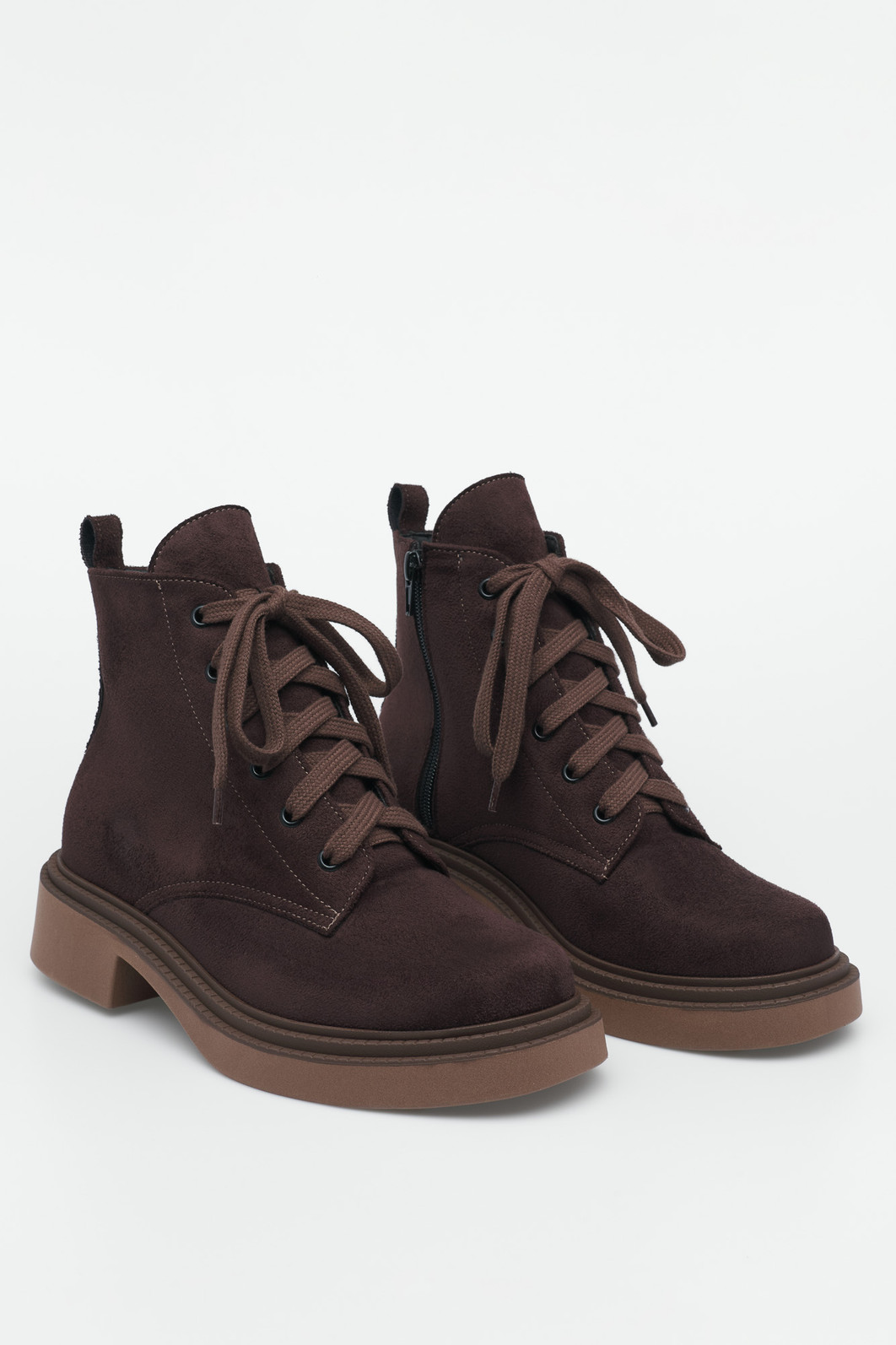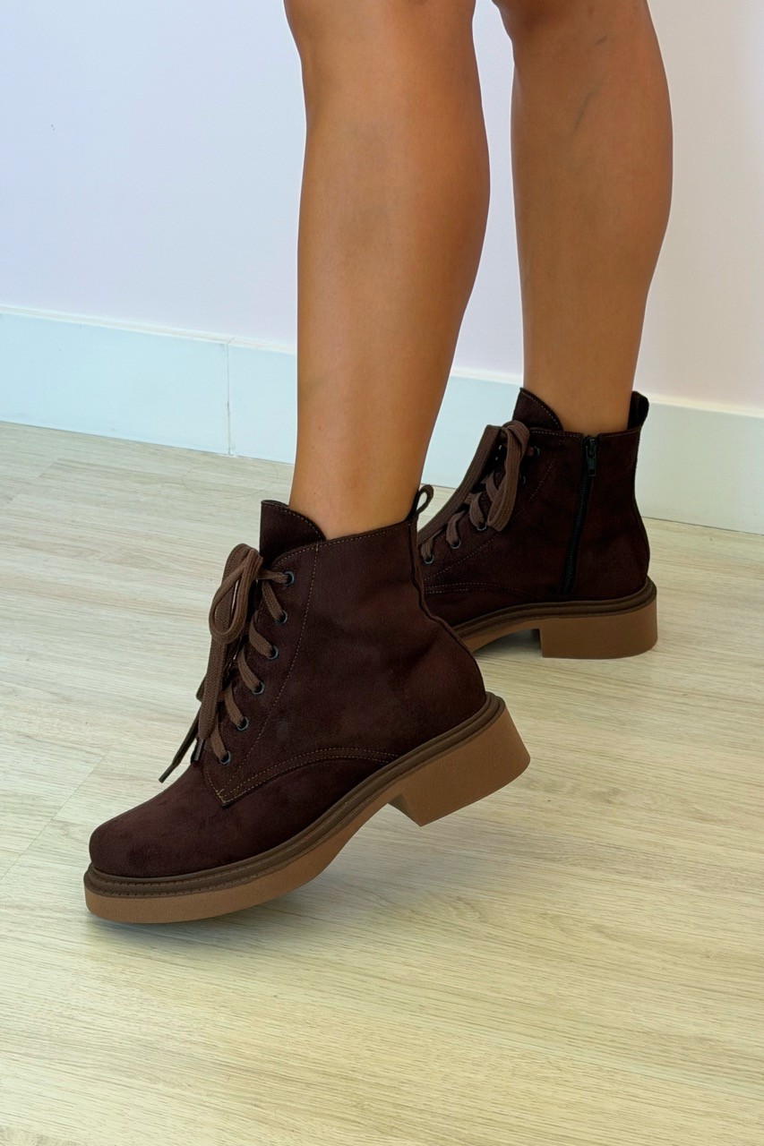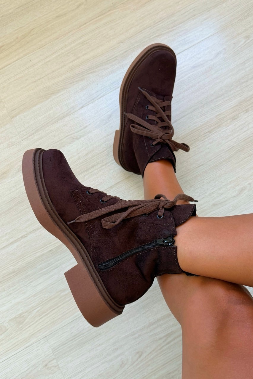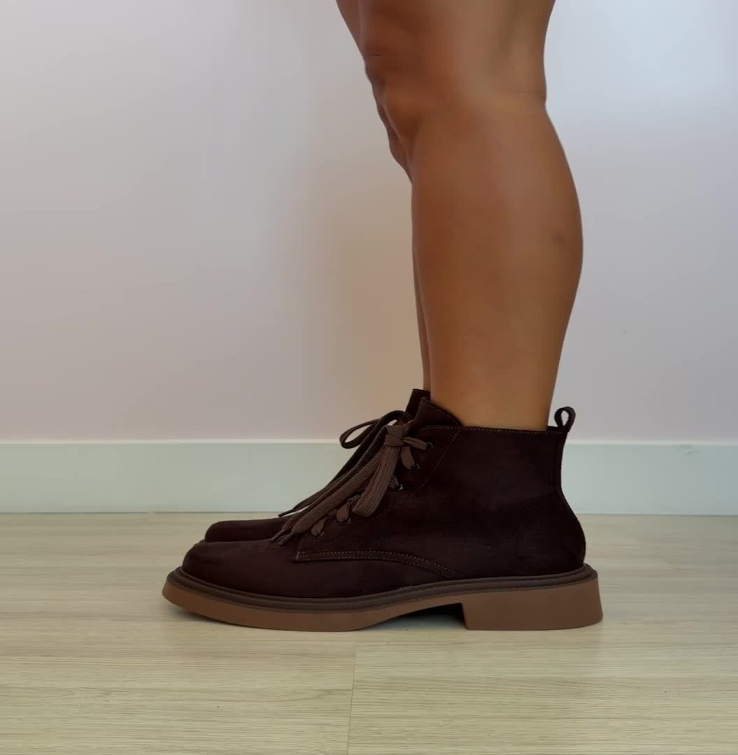 O Coturno Flávia Marrom MIST redefine o estilo militar com sofisticação. Confeccionado em acabamento camurça (suede) na cor Café, ele suaviza a robustez da combat boot, tornando-a perfeita para looks casuais e modernos.