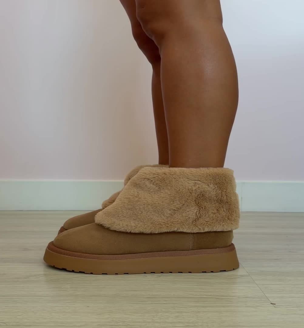 Para trazer informação de moda, conta com um solado plataforma robusto de borracha tratorada, garantindo isolamento térmico e atitude. Perfeita para looks despojados com leggings ou jeans, é o passaporte para um inverno cheio de estilo.