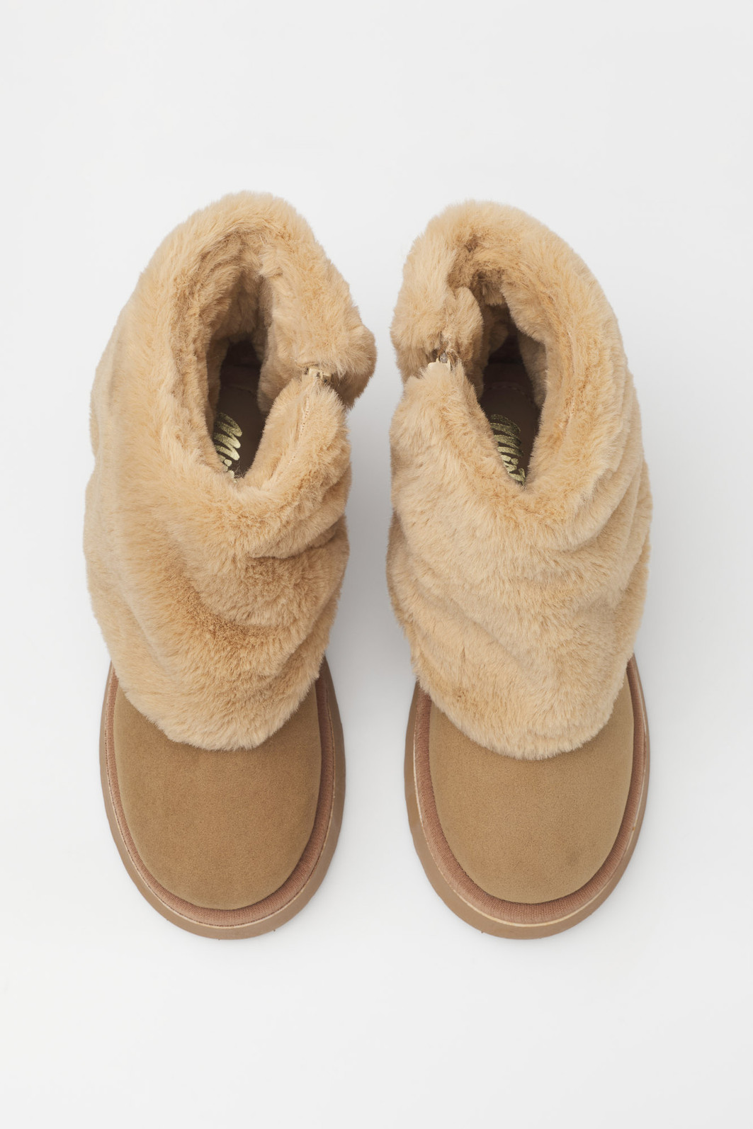 A Bota Fluffy Lia Bege MIST é a prova de que você não precisa abrir mão do estilo para sentir seus pés quentinhos. Inspirada na estética Comfy, traz um visual marcante em tecido suede com uma gola felpuda em pelos sintéticos que esbanja charme.