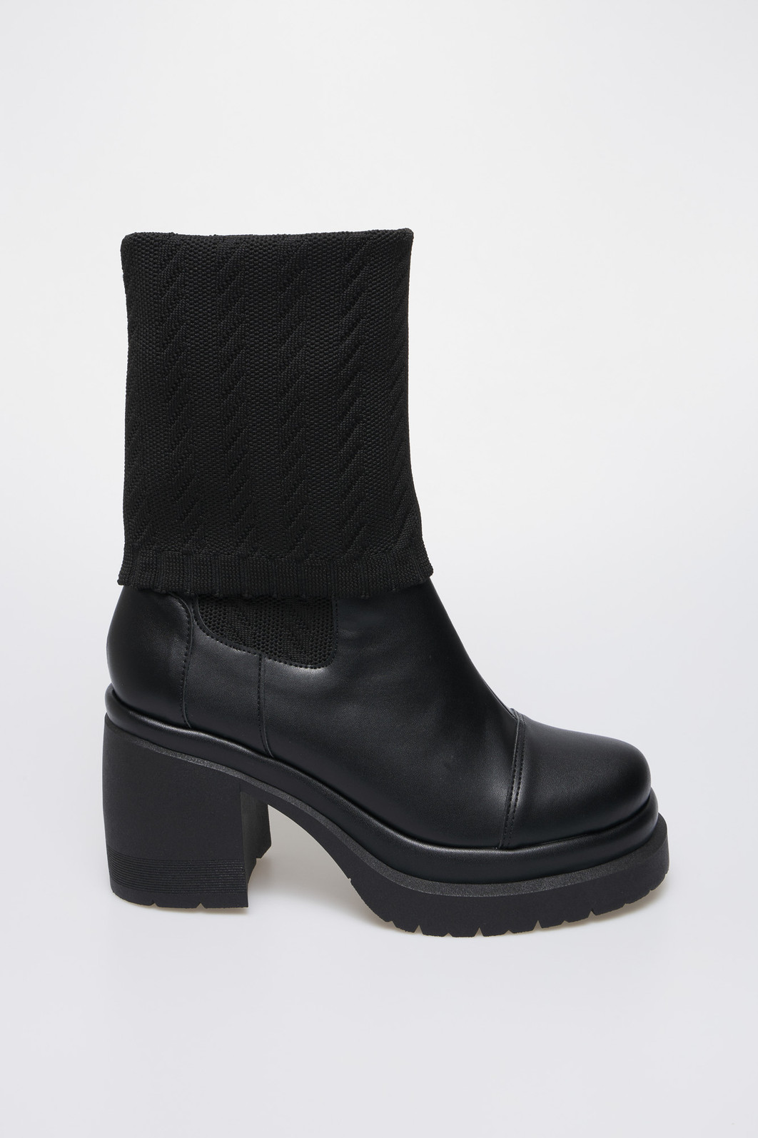 Detalhes: Solado tratorado, Cano em malha ajustado (stretch)