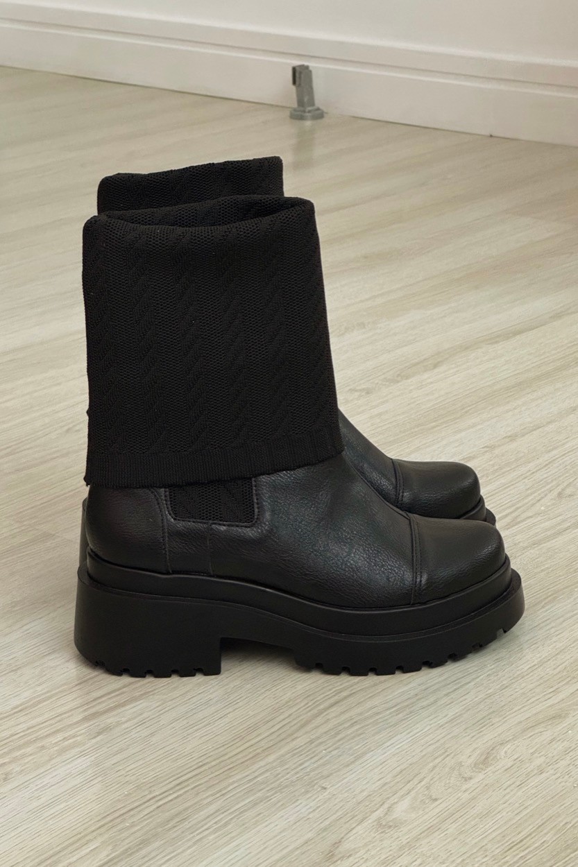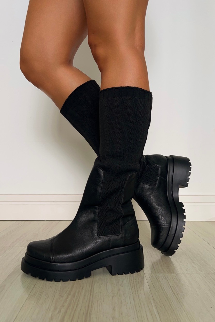 Inovação e conforto se encontram na Bota Patrícia MIST. Com design contemporâneo, o surpreendente cano em malha knit texturizada abraça a perna como uma meia, oferecendo flexibilidade e um toque aconchegante.