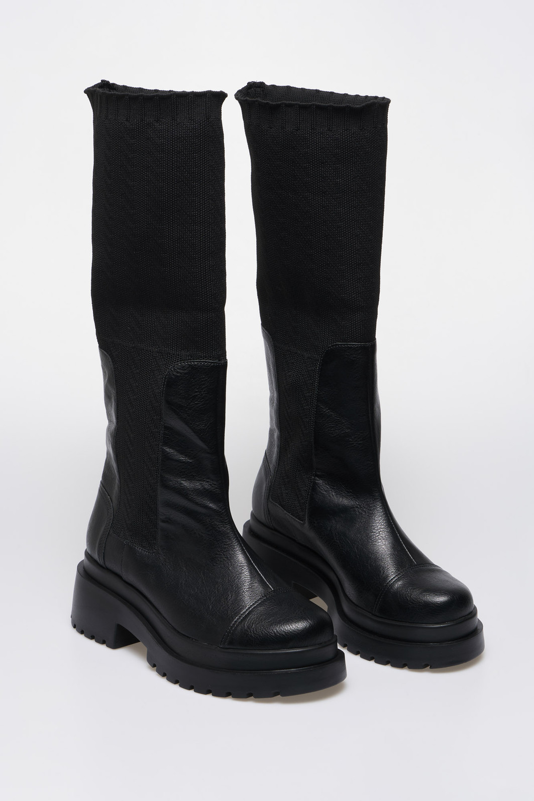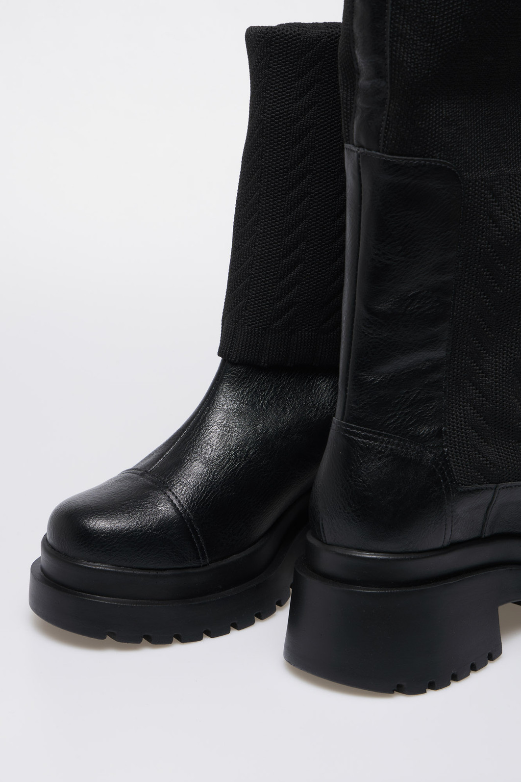 Detalhes: Cano em malha knit texturizada, Solado tratorado