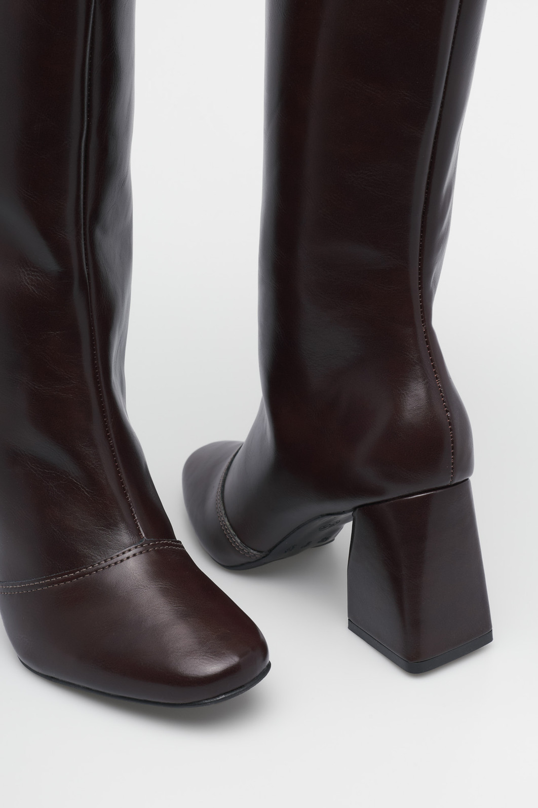 Confeccionada em napa lisa, possui cano alto que desenha a perna e zíper lateral para um calce prático. Um coringa absoluto que transita do office look ao inverno chic, perfeita para usar com saias, vestidos midi ou jeans skinny.