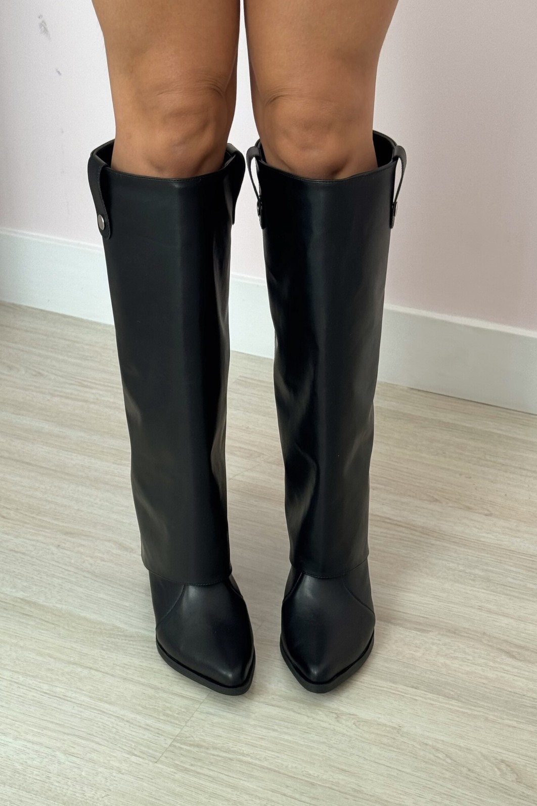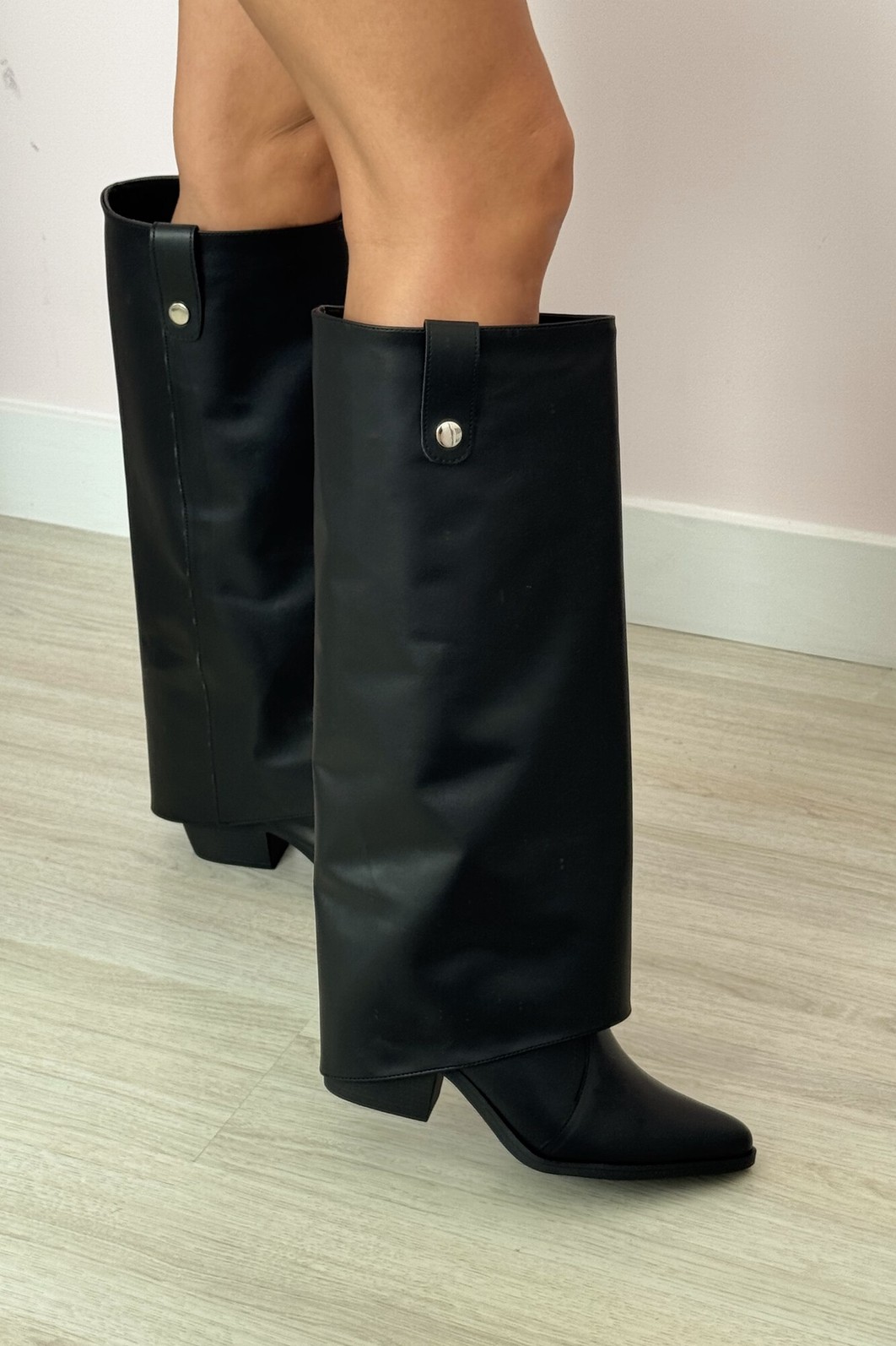 A Bota Rúbia 2 em 1 Preta MIST é a peça-chave para multiplicar seus looks. Com design moderno e versátil, seu cano alto com capa removível transforma o visual em segundos, enquanto o bico fino alonga a silhueta.