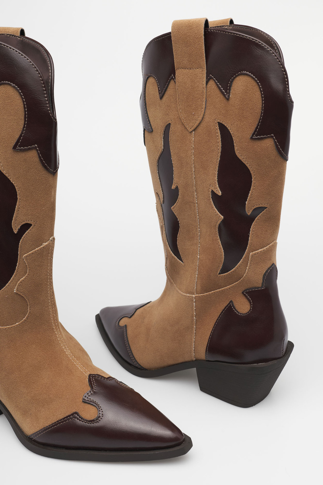 Detalhes: Recortes western, Bico fino, Mix de texturas