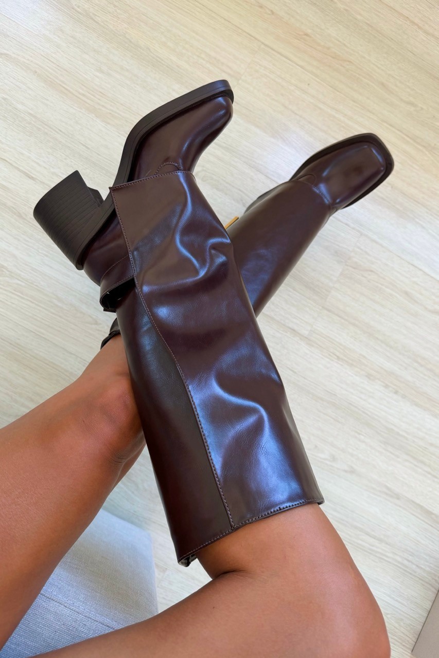 A Bota Shark Grazi Café MIST é a tendência absoluta das passarelas em uma versão sofisticada. Com a icônica modelagem polaina (Shark), seu cano com sobreposição cria uma silhueta moderna e arquitetônica, complementada pelo bico quadrado contemporâneo.