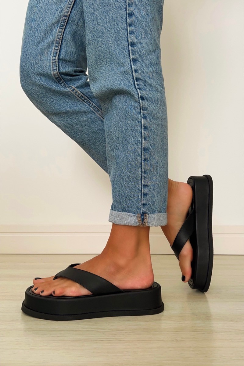 O salto plataforma acrescenta altura sutil sem abrir mão do conforto. Versátil, a cor Preta é a parceira perfeita para shorts, jeans e vestidos, tornando-se um item essencial no closet da mulher contemporânea.