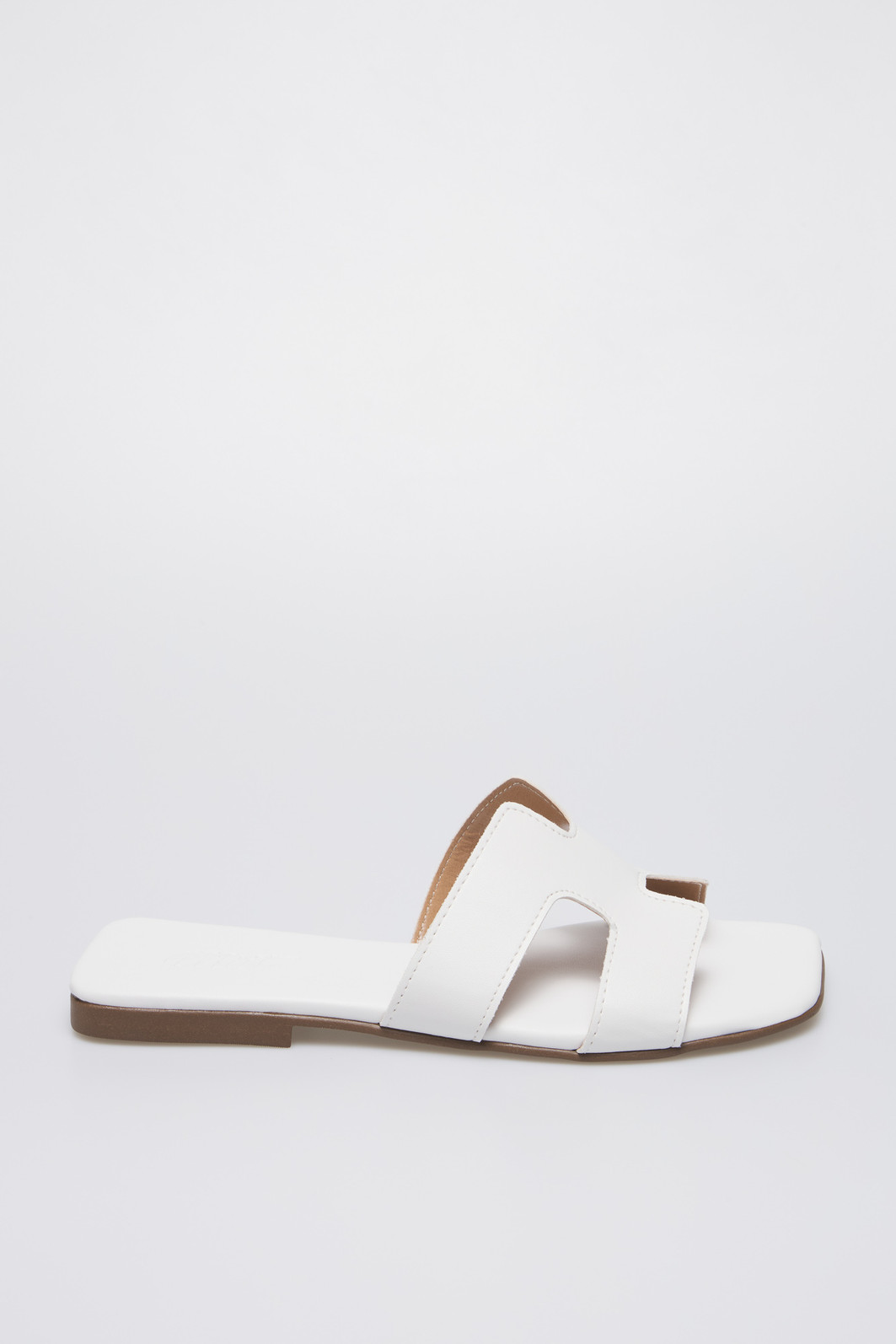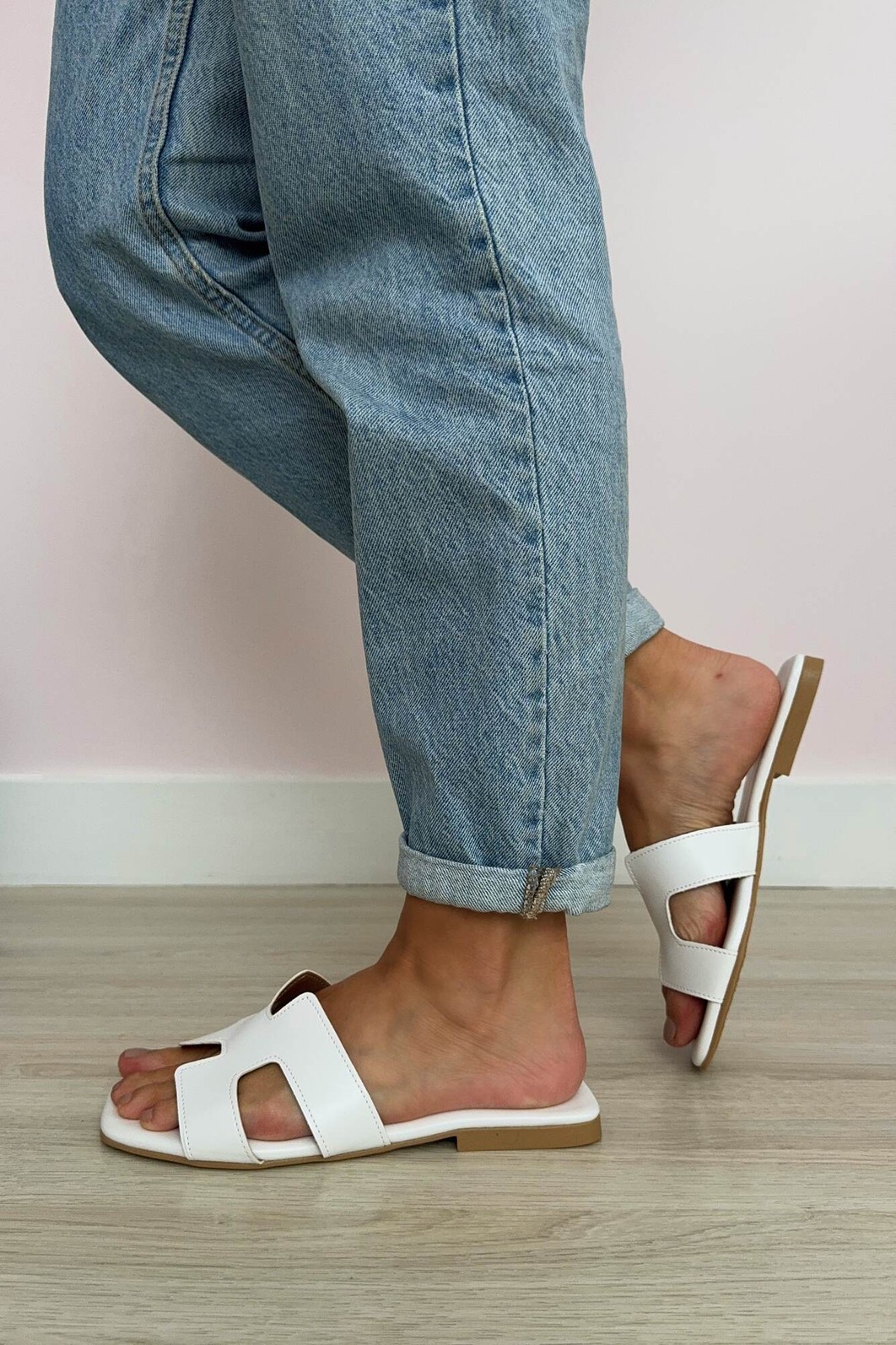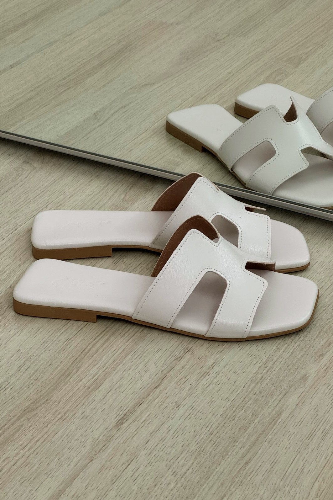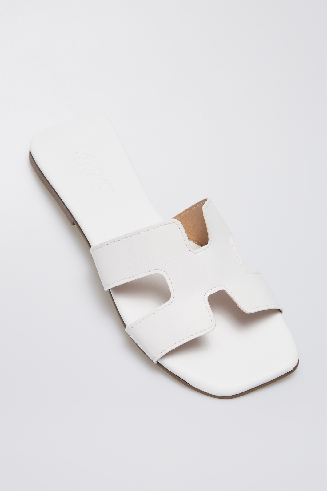 Descubra a sofisticação da Rasteira Gigi White da MIST. Com um design slip-on moderno e uma tira larga com recortes, ela é a escolha perfeita para quem busca estilo e praticidade para o dia a dia.