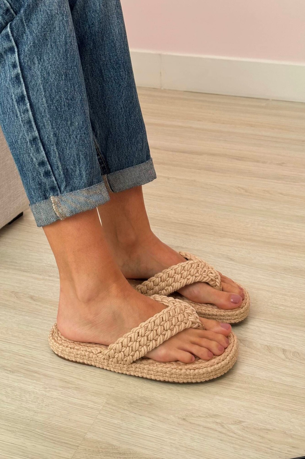 A Flat Giovana Natural MIST abraça a leveza e a beleza com um design que é puro charme. Com inspiração artesanal e autêntica, seu diferencial é a construção inteiramente revestida por um trançado elaborado em ráfia.