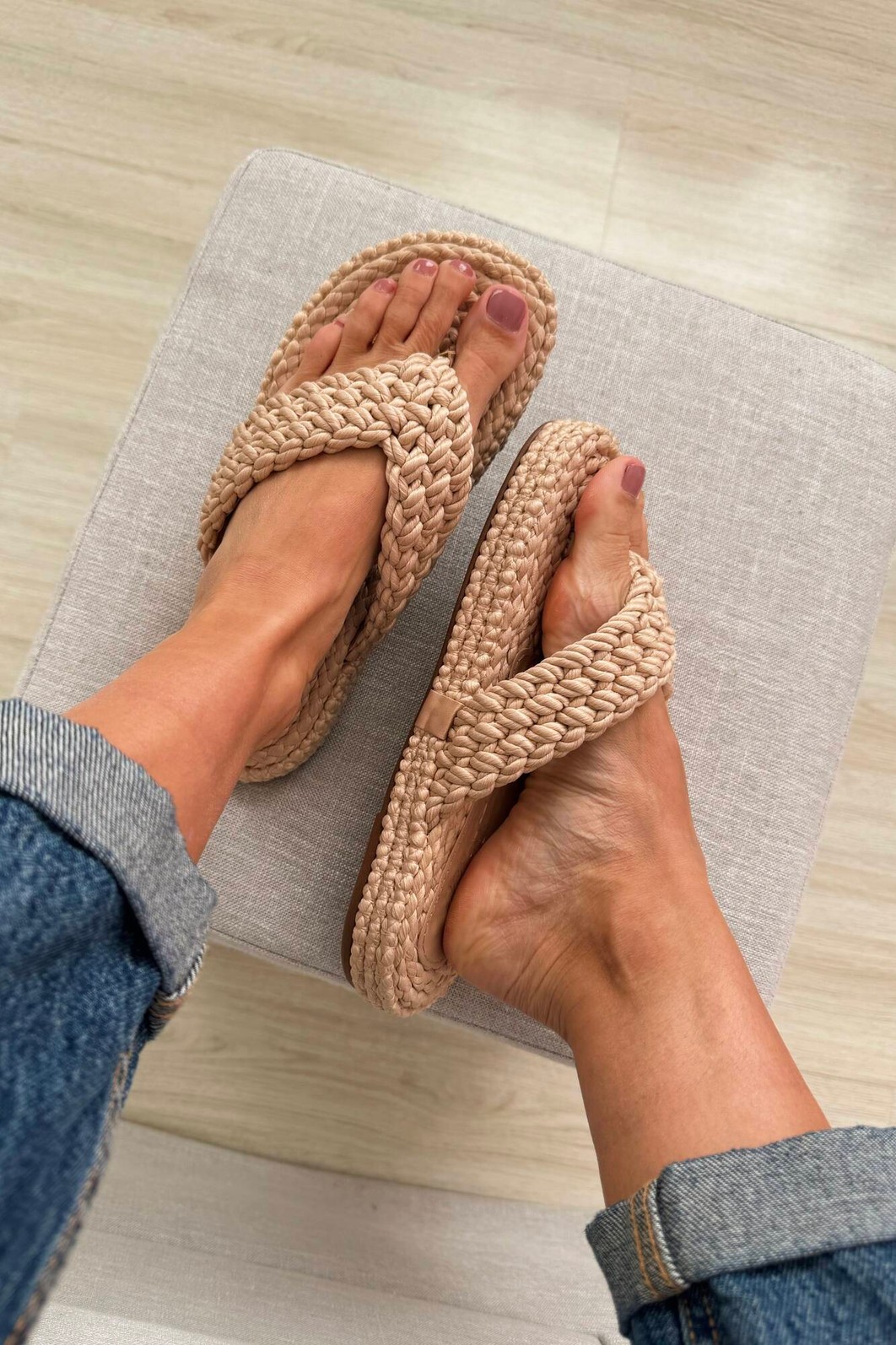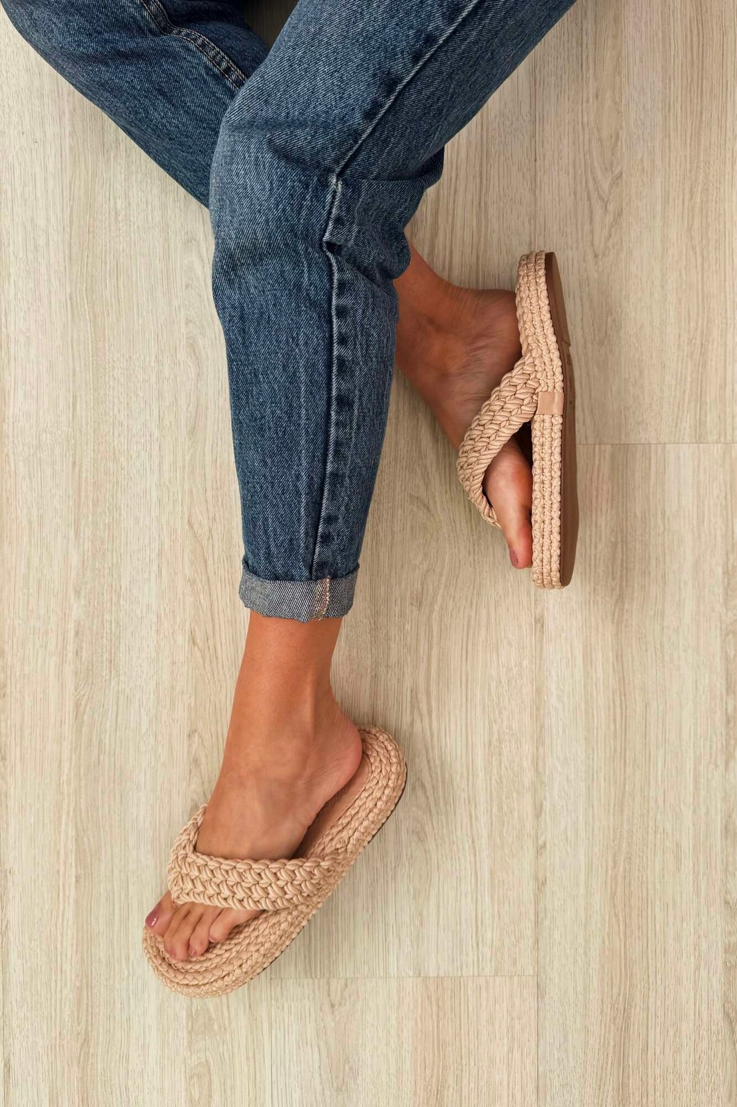 Sua plataforma discreta oferece maior conforto para o dia a dia. Versátil, a cor Natural é perfeita para looks com vestidos e linho, exalando frescor. Uma rasteira ideal para quem busca um calçado alinhado às tendências de verão.