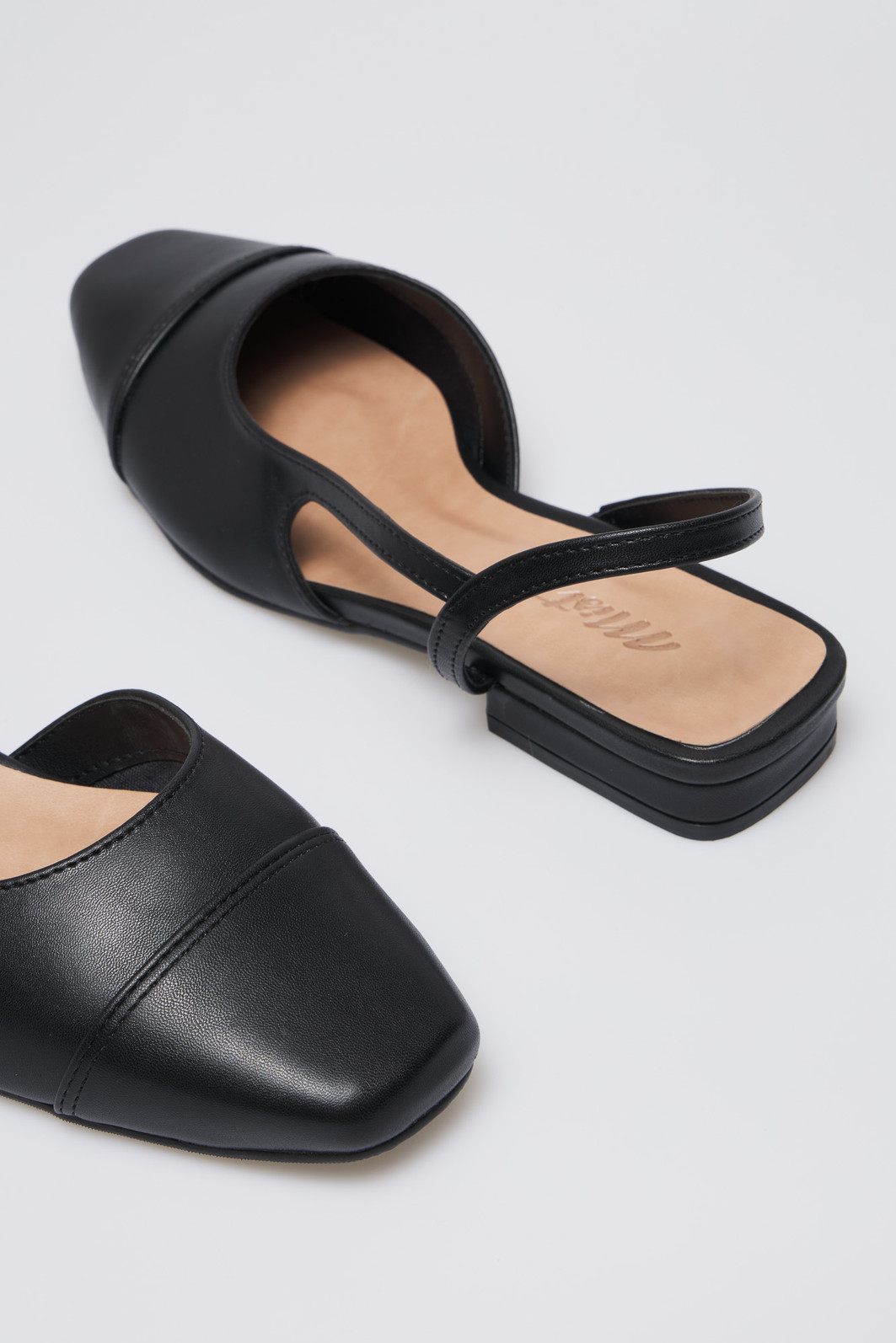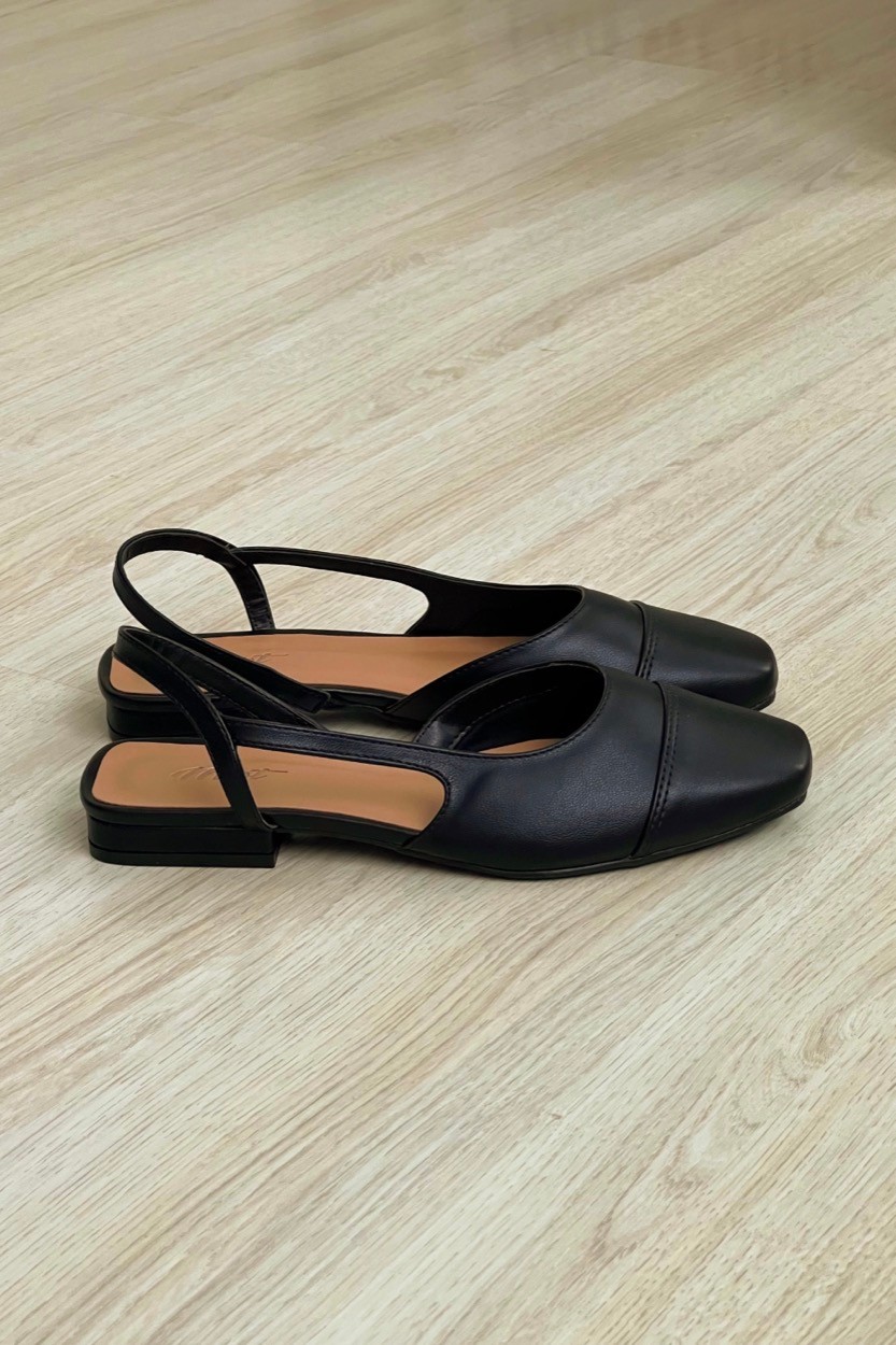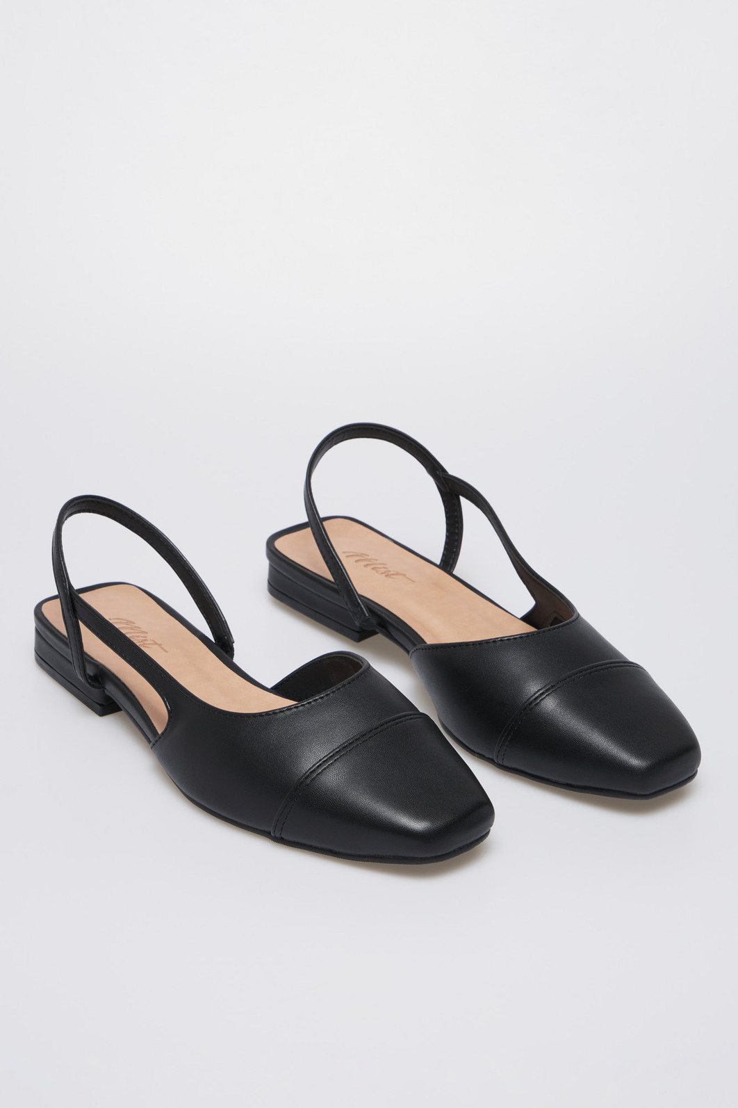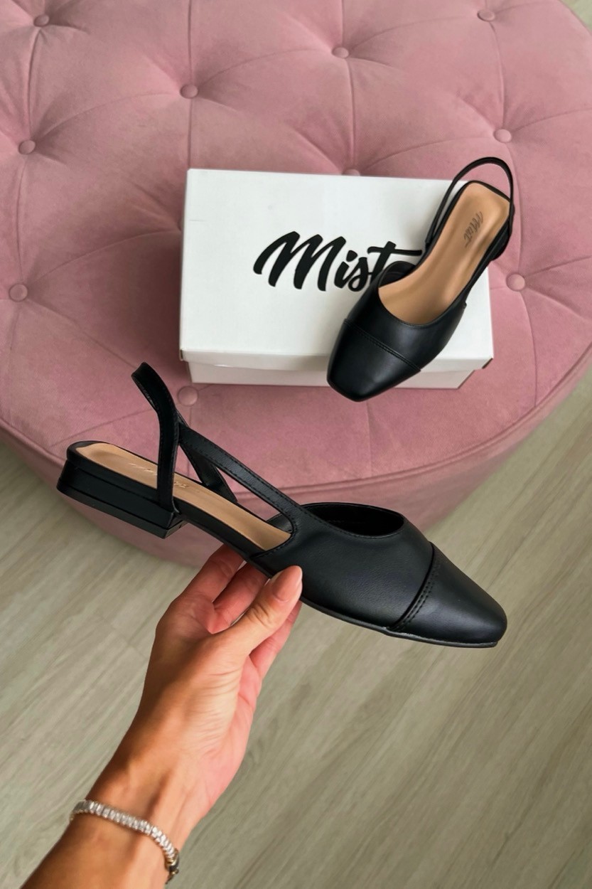 Detalhes: Design slingback (calcanhar à mostra), Bico quadrado
