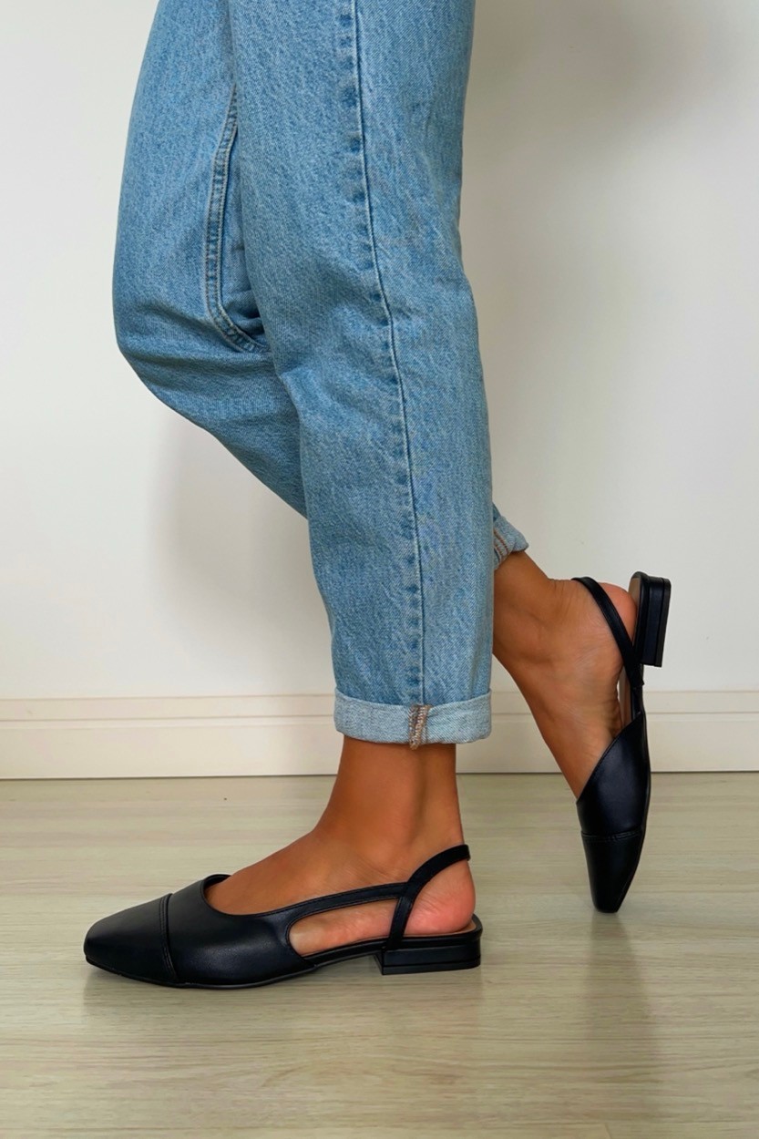 A Flat Julie Duo Preto é a prova de que conforto e estilo podem andar juntos. Com design slingback e acabamento clássico, esta flat imprime modernidade ao look, sendo perfeita para diversas ocasiões.