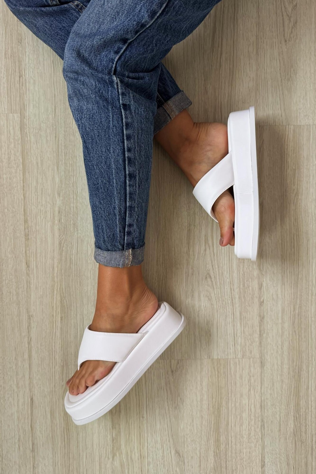 A Flat Lívia Branco MIST é a tradução perfeita de conforto e estilo minimalista. Moderna e versátil, ela traz a leveza de uma rasteira com a elegância da plataforma, garantindo um toque de altura que alonga a silhueta.