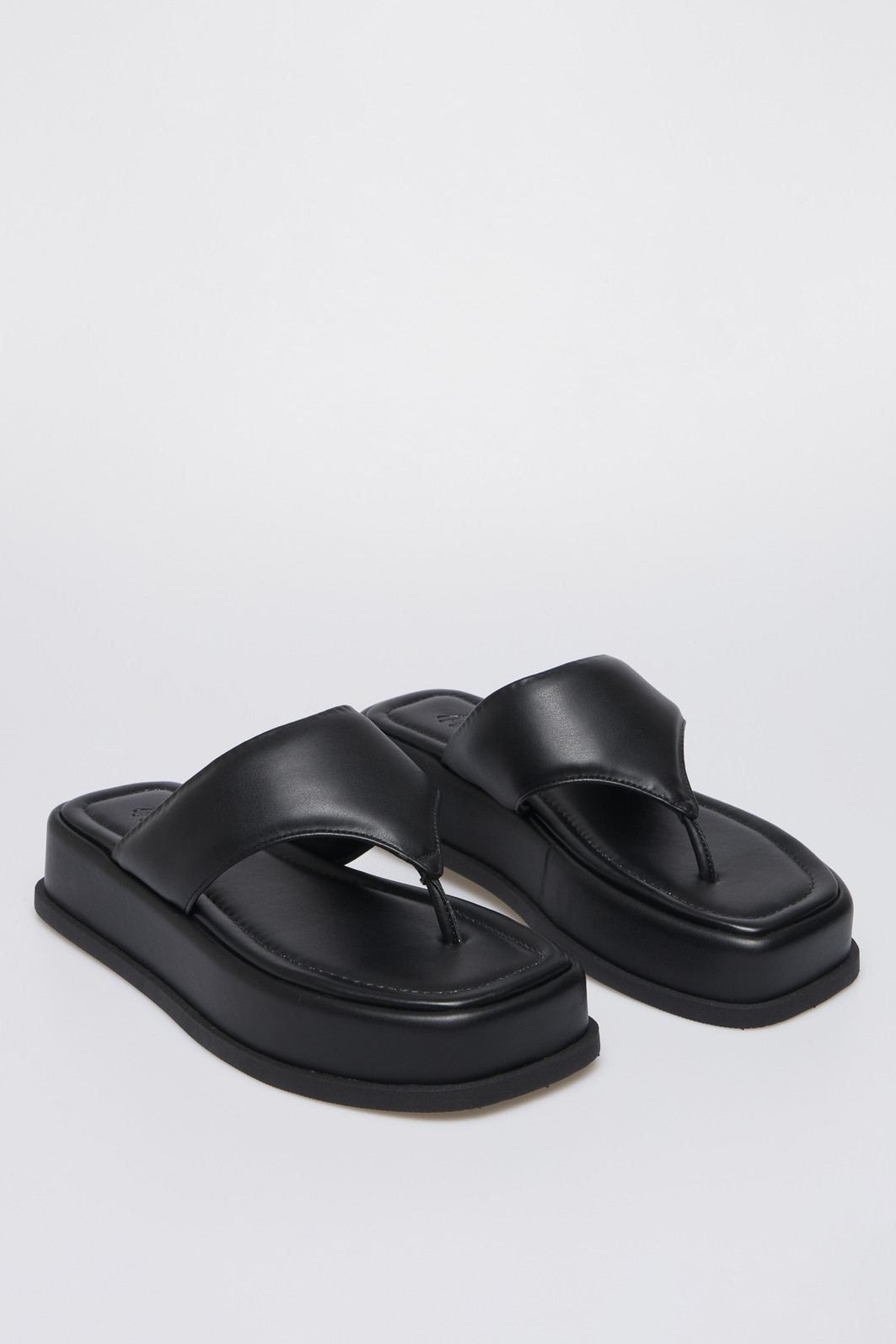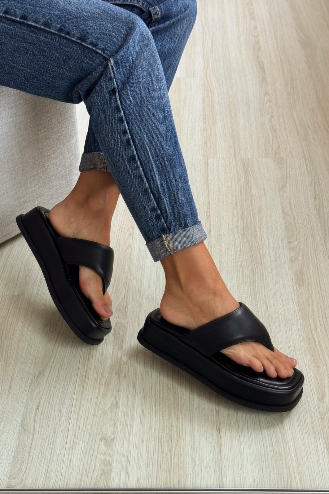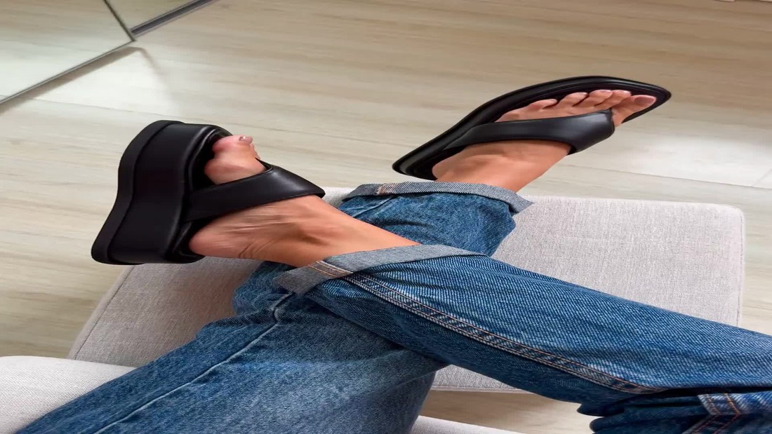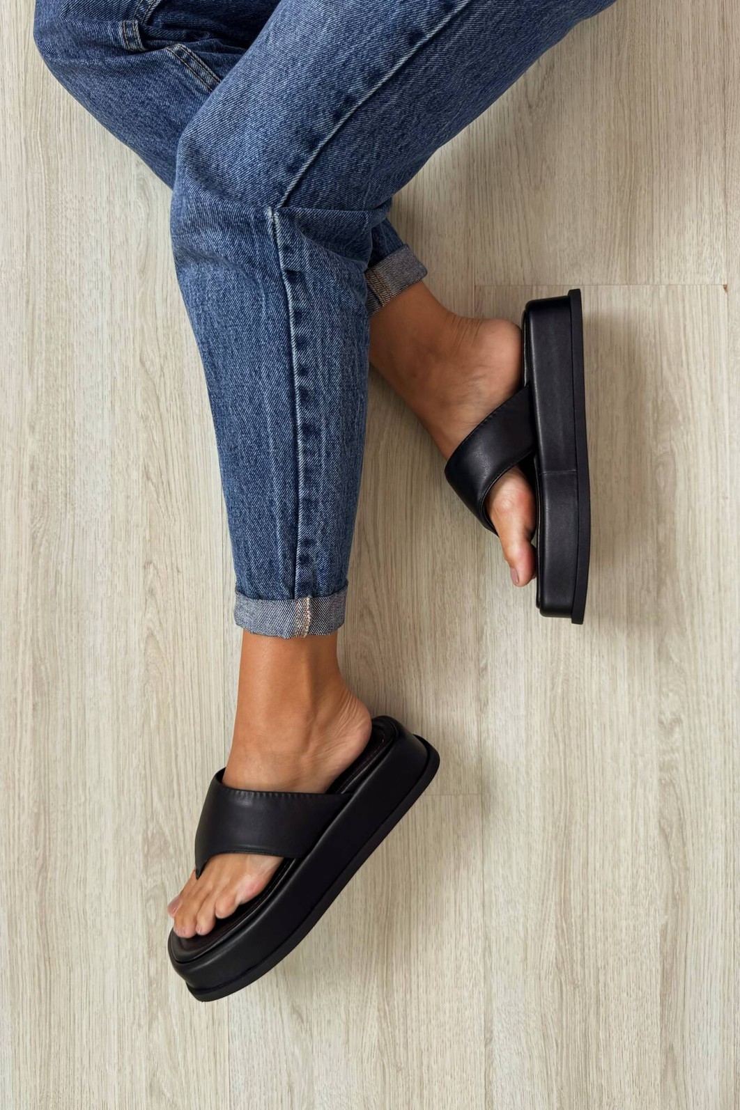 A Flat Lívia Preto MIST redefine a praticidade e elegância para o dia a dia. Com design minimalista, sua plataforma flatform proporciona elevação e conforto, enquanto a tira larga sobre o pé garante um ajuste firme e moderno.