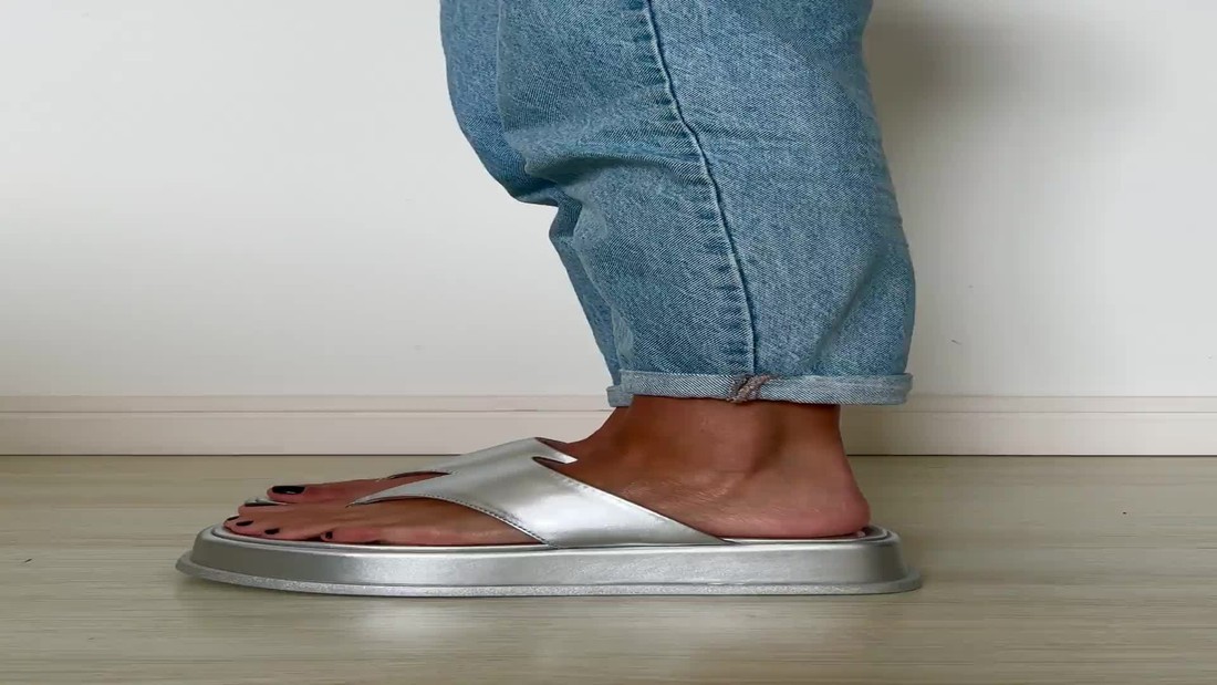 Ilumine seus passos com a Flat Lívia Silver MIST! Com seu acabamento metalizado, ela combina design impactante e conforto em uma plataforma reta cheia de estilo.