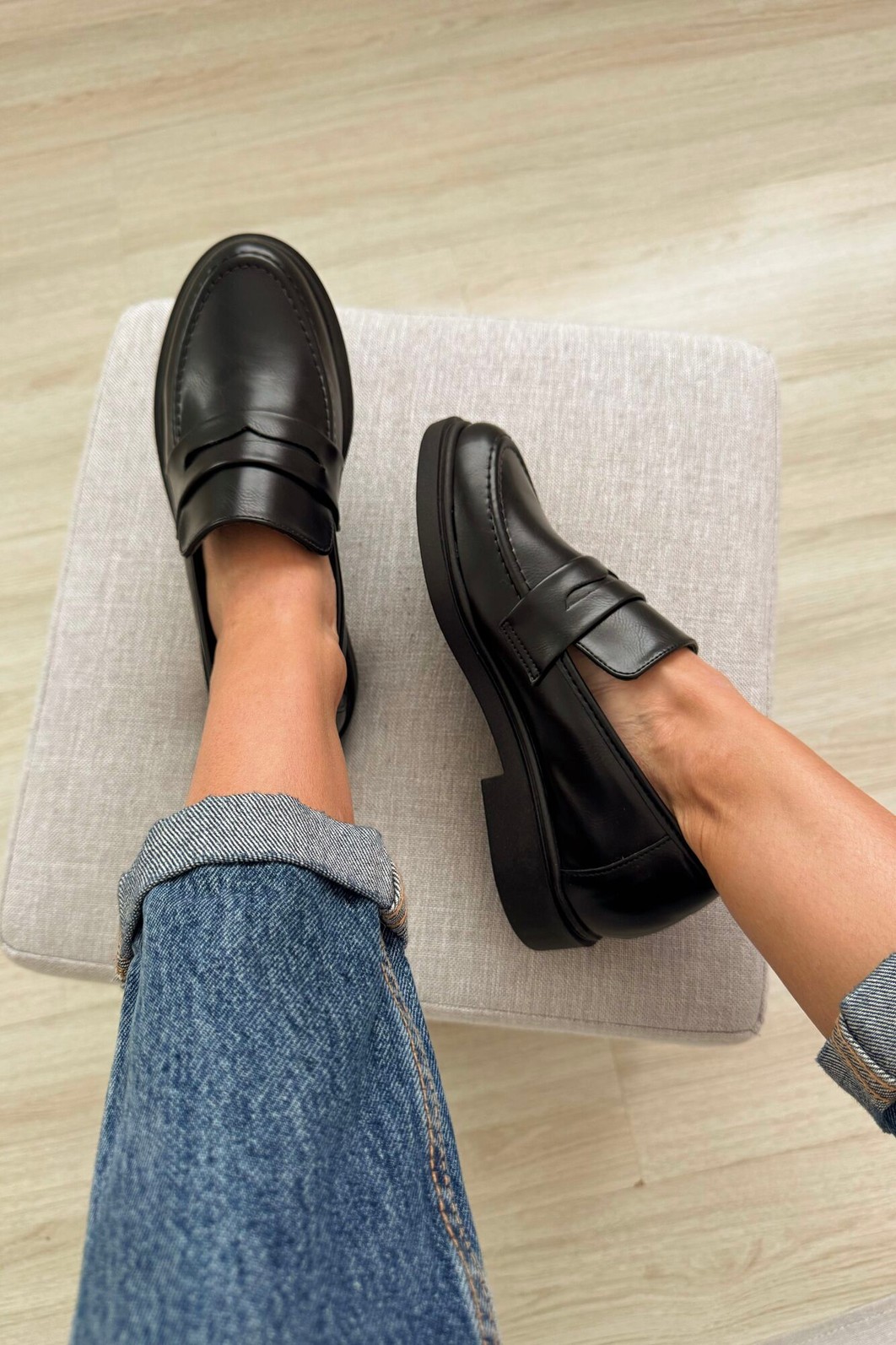 Detalhes: Tira clássica no peito do pé (loafer), Costuras aparentes