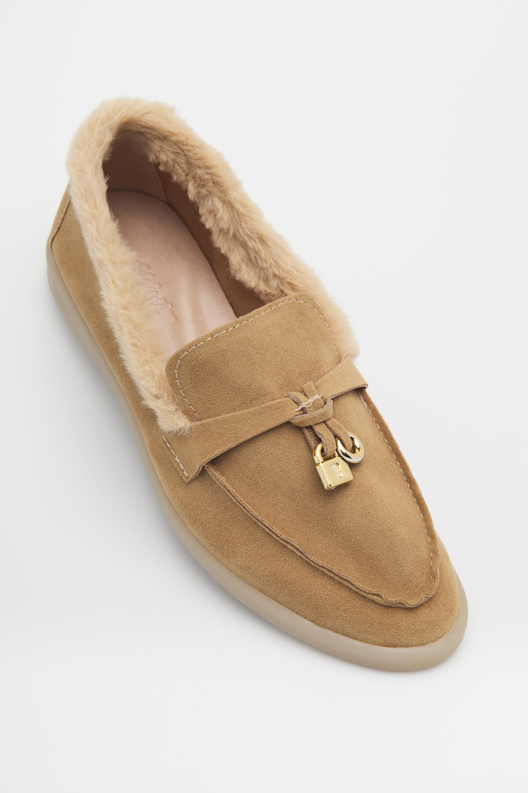 O exterior em camurça na cor palha confere um aspecto rústico-chic, enquanto o delicado cadeado dourado adiciona um toque de exclusividade. Versátil, é a peça-chave que transita do jeans básico à alfaiataria com total praticidade.