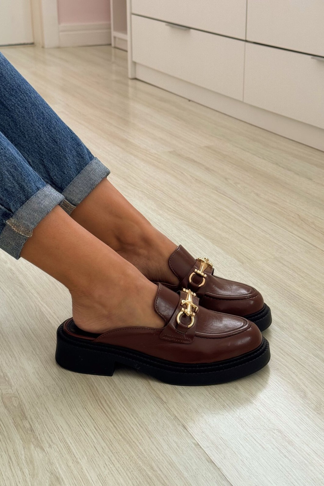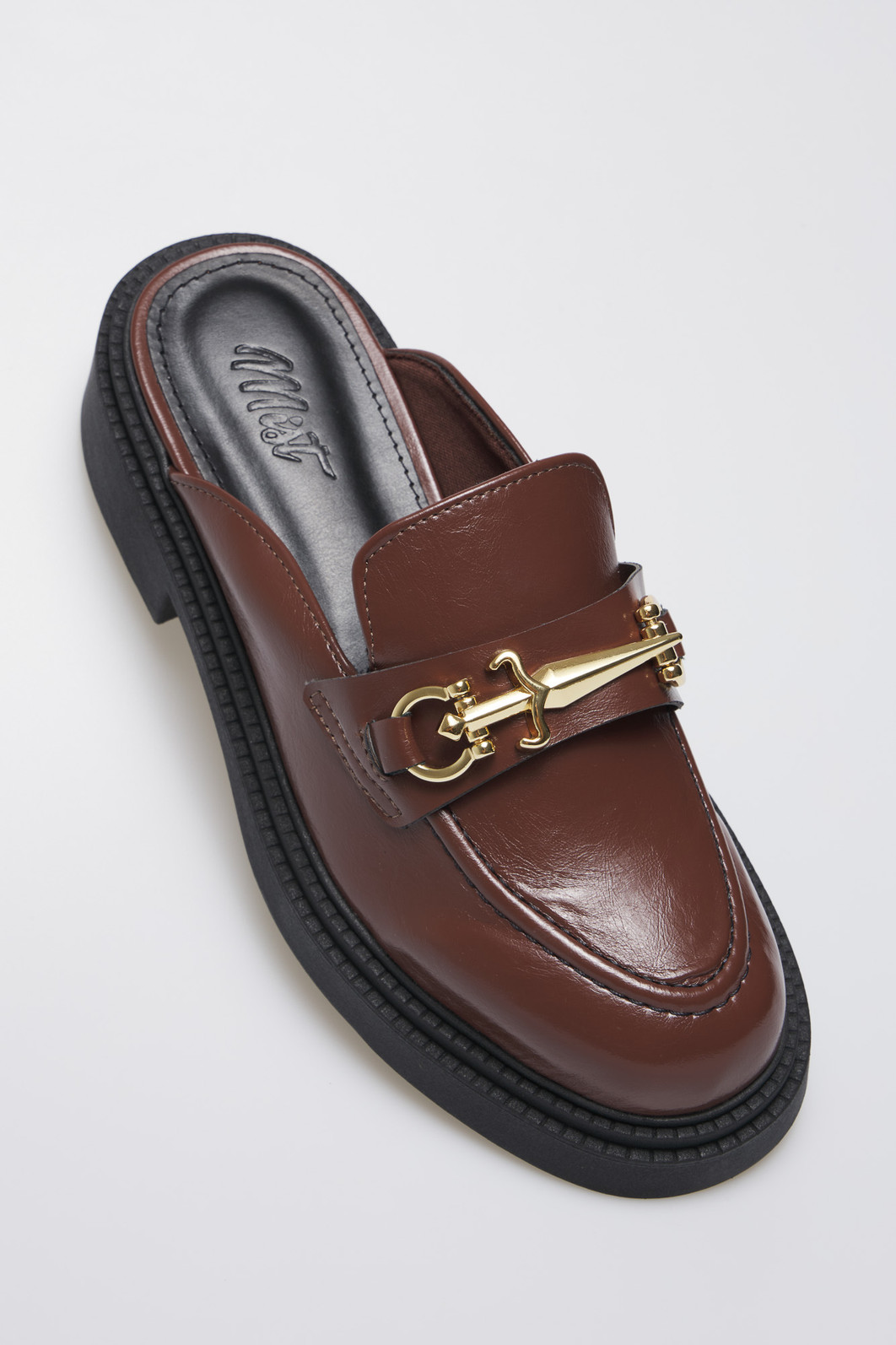 O Mule Fabi Terra MIST combina elegância e conforto em um design versátil. Seu acabamento envernizado marrom garante sofisticação, enquanto o detalhe dourado adiciona modernidade.