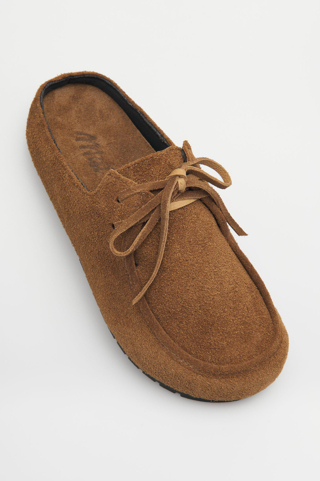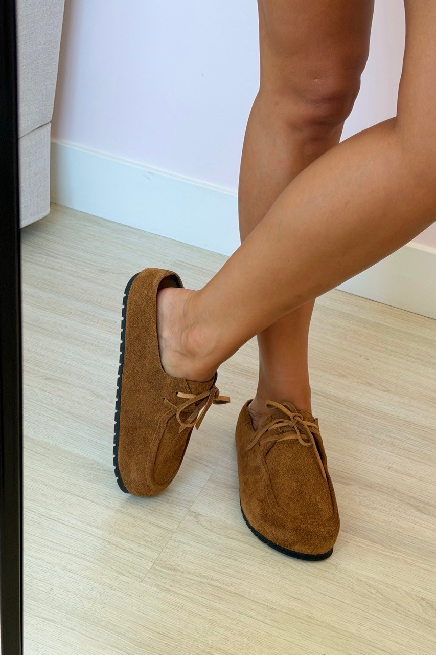 O Mule Clog Lis Camel MIST é a escolha perfeita para quem procura conforto e personalidade despojada. Inspirado na estética rústico-chic, este modelo estilo babuche é confeccionado em camurça camel, trazendo a tendência boho para o dia a dia.