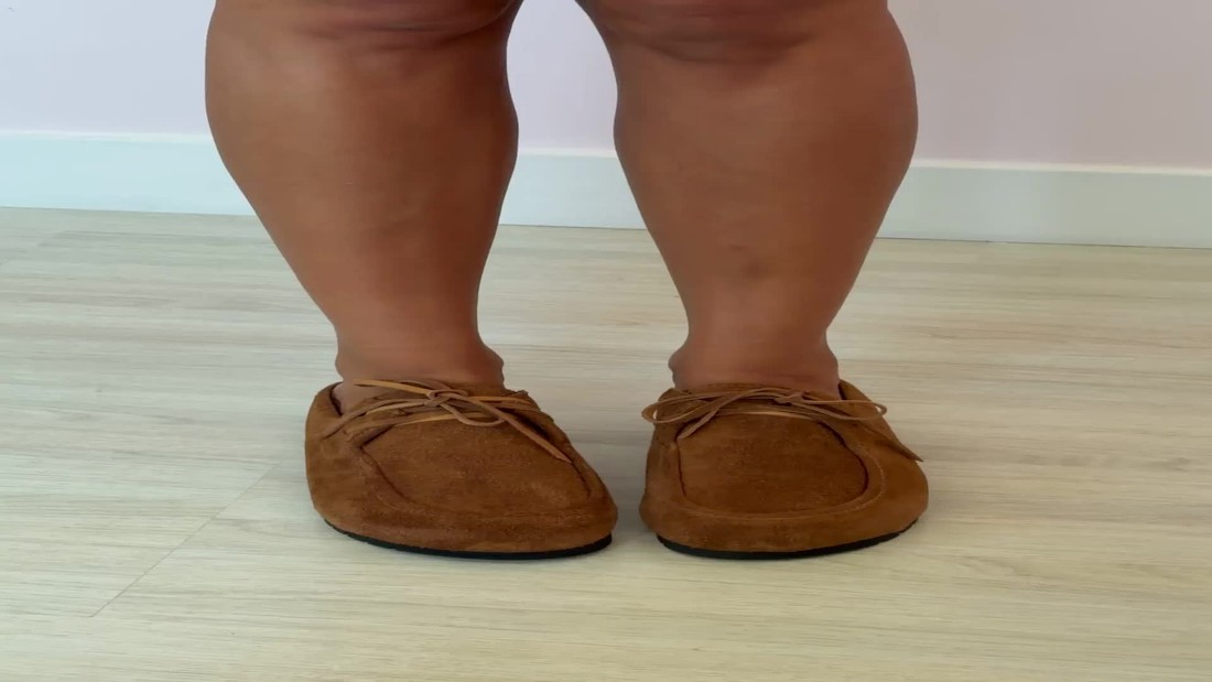 Detalhes: Costura aparente (Moc Toe), Amarração em laço, Estilo Clog