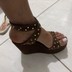 A Sandália Amalfi Caramelo MIST é a peça-chave para quem busca altura, estilo e personalidade. Seu design robusto de plataforma anabela é aliado ao charme da camurça caramelo, enriquecida por tachas douradas que adicionam um toque moderno.