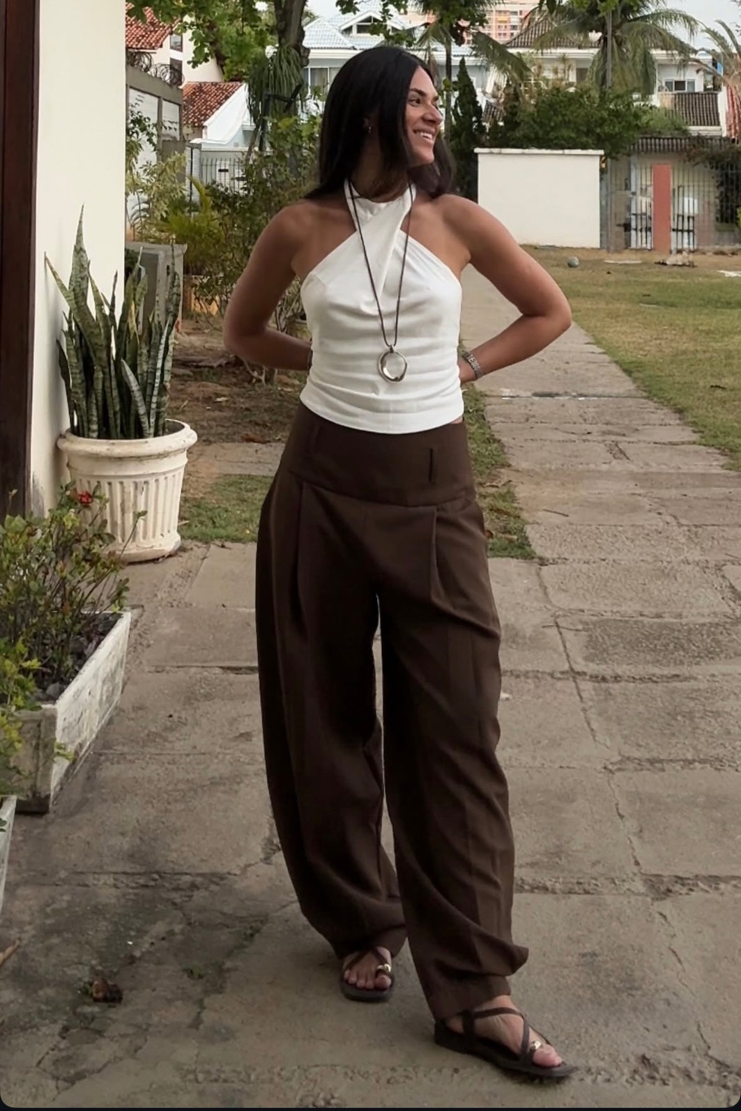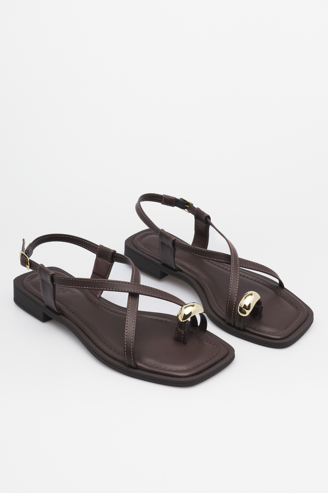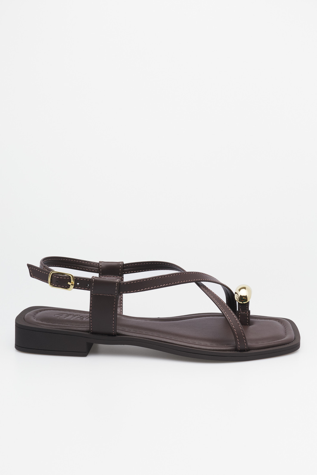 A Sandália Brisa Marrom MIST é a escolha perfeita para quem busca sofisticação com um toque moderno. Seu design minimalista combina tiras finas cruzadas com um delicado aplique metálico dourado, transformando a rasteira em um item fashionista.