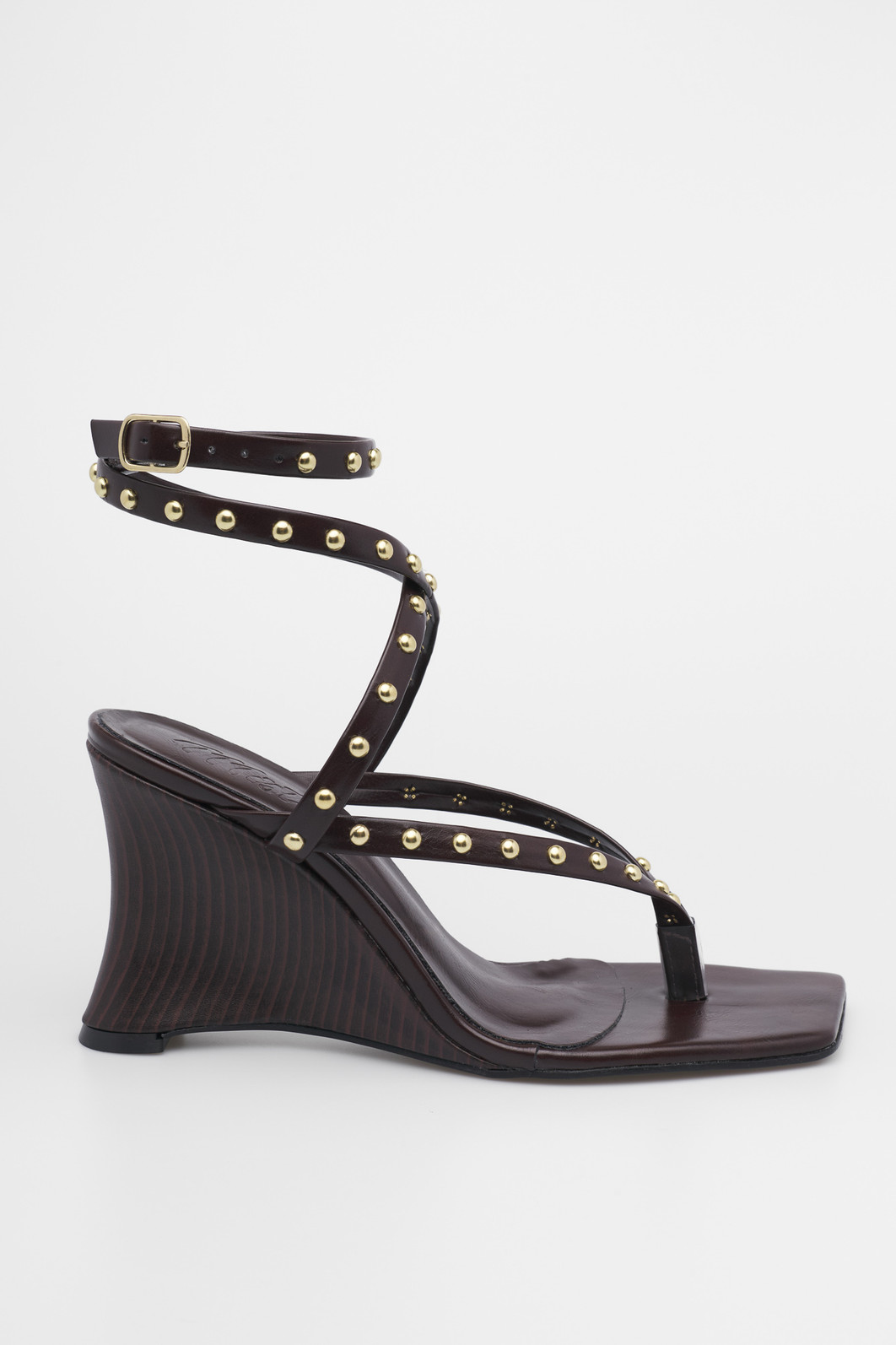 A Sandália Daphne Café MIST transforma qualquer look com personalidade e modernidade. Seu design com tiras finas enriquecidas com studs dourados abraça o pé de forma elegante, adicionando brilho e sofisticação.
