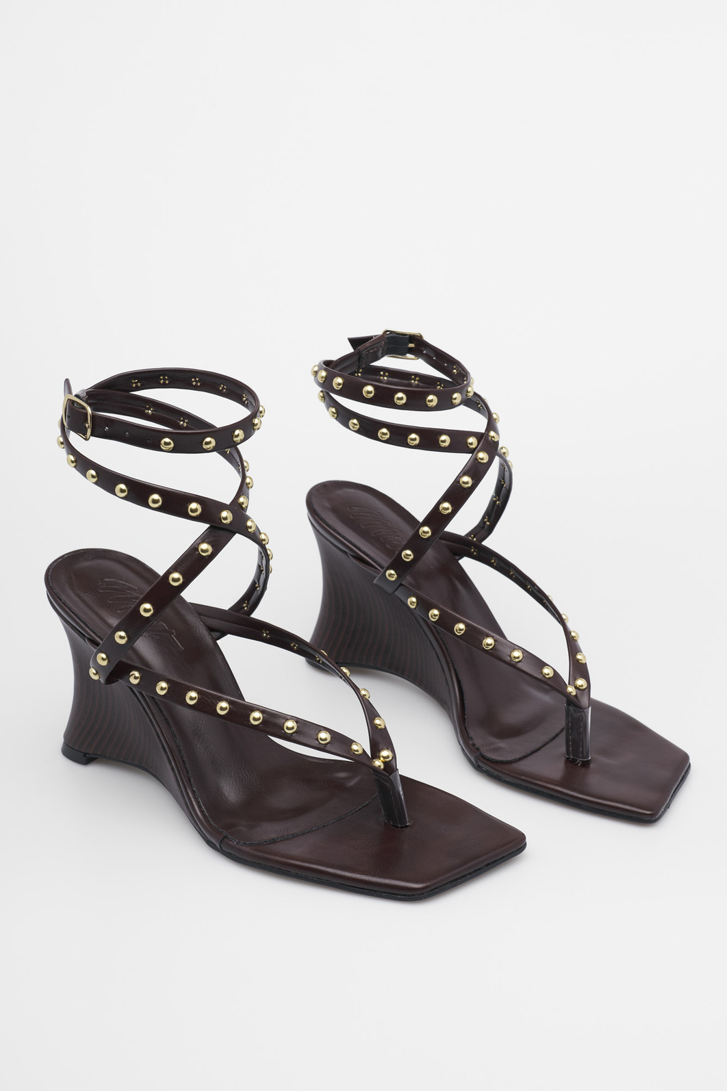 Detalhes: Studs dourados, Tiras finas, Efeito gladiadora