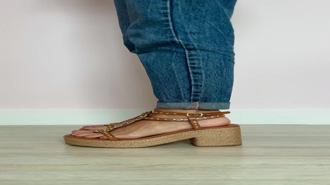Detalhes: Rebites dourados, Detalhes circulares, Tiras estilo gladiador