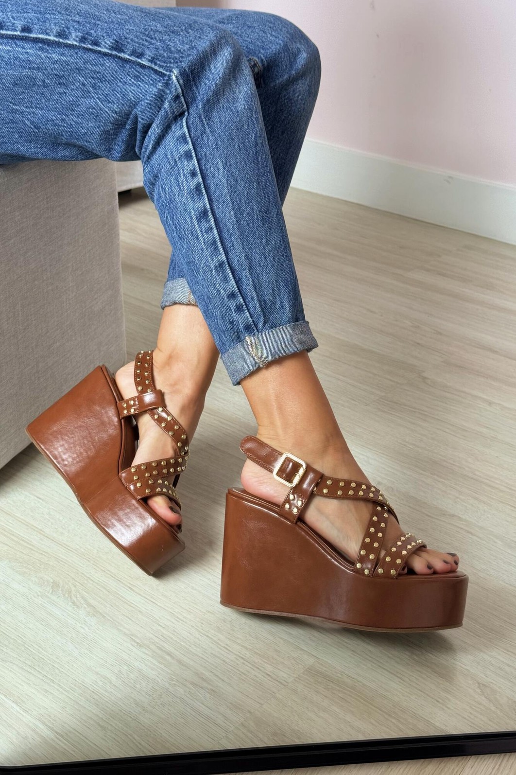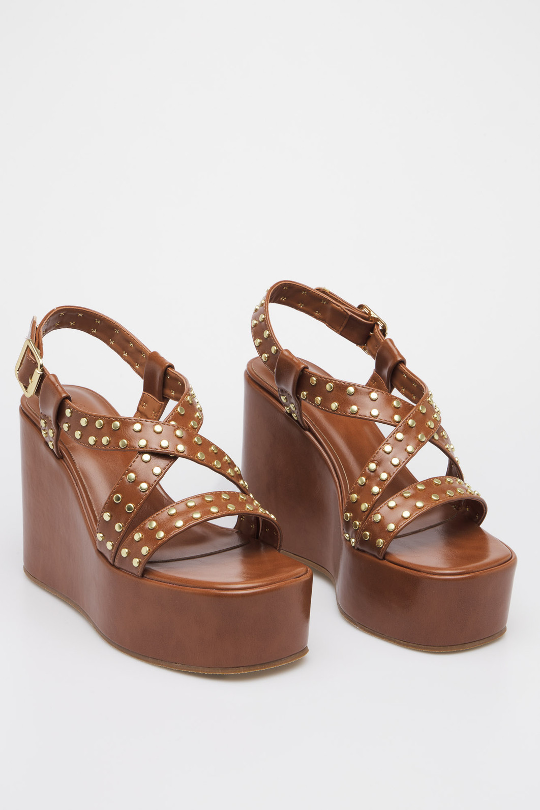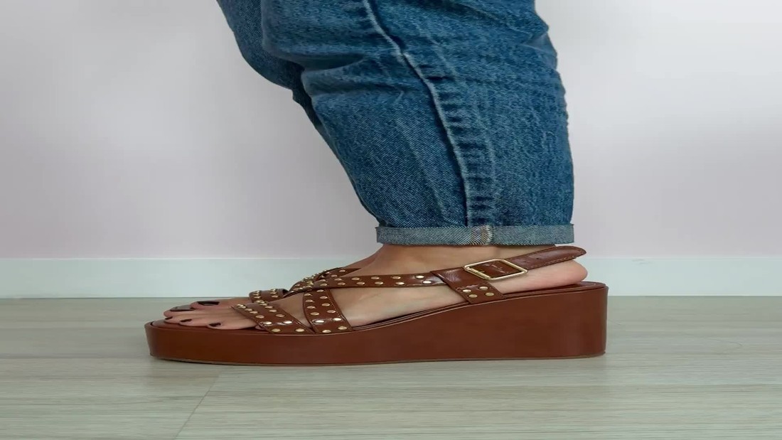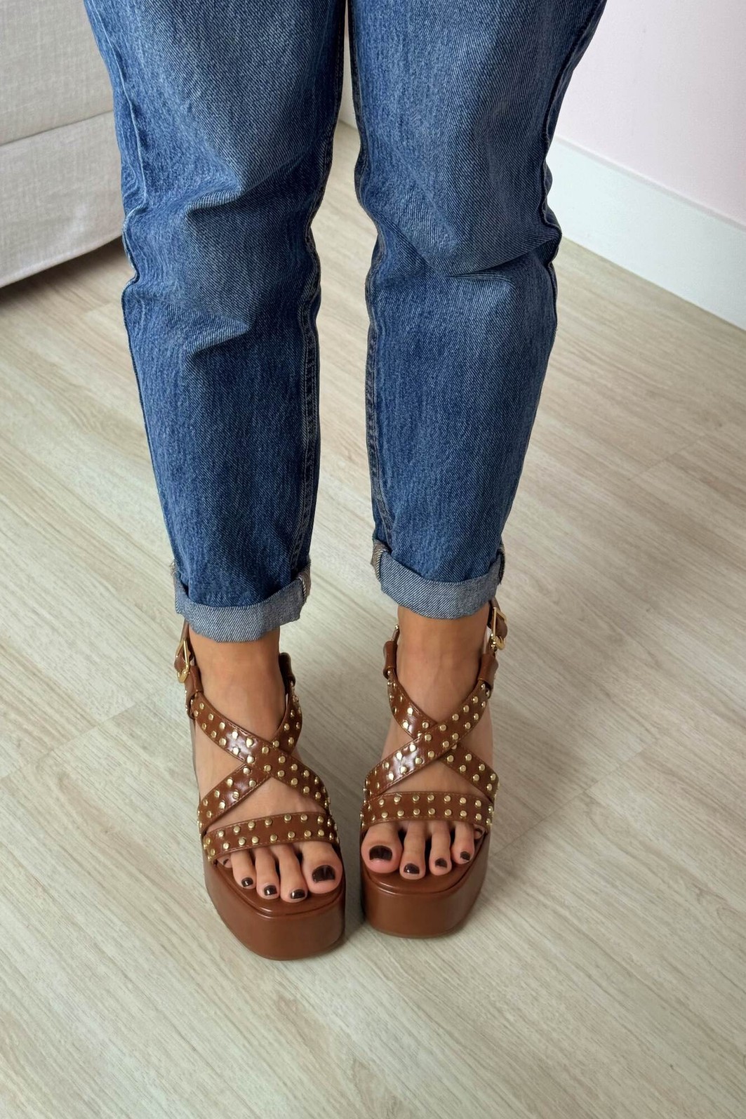 A Sandália Fabiana Camel MIST é a definição de estilo e conforto. Com inspiração boho chic, sua plataforma anabela oferece altura com estabilidade, enquanto as tiras cruzadas são adornadas com tachas douradas para um toque sofisticado.