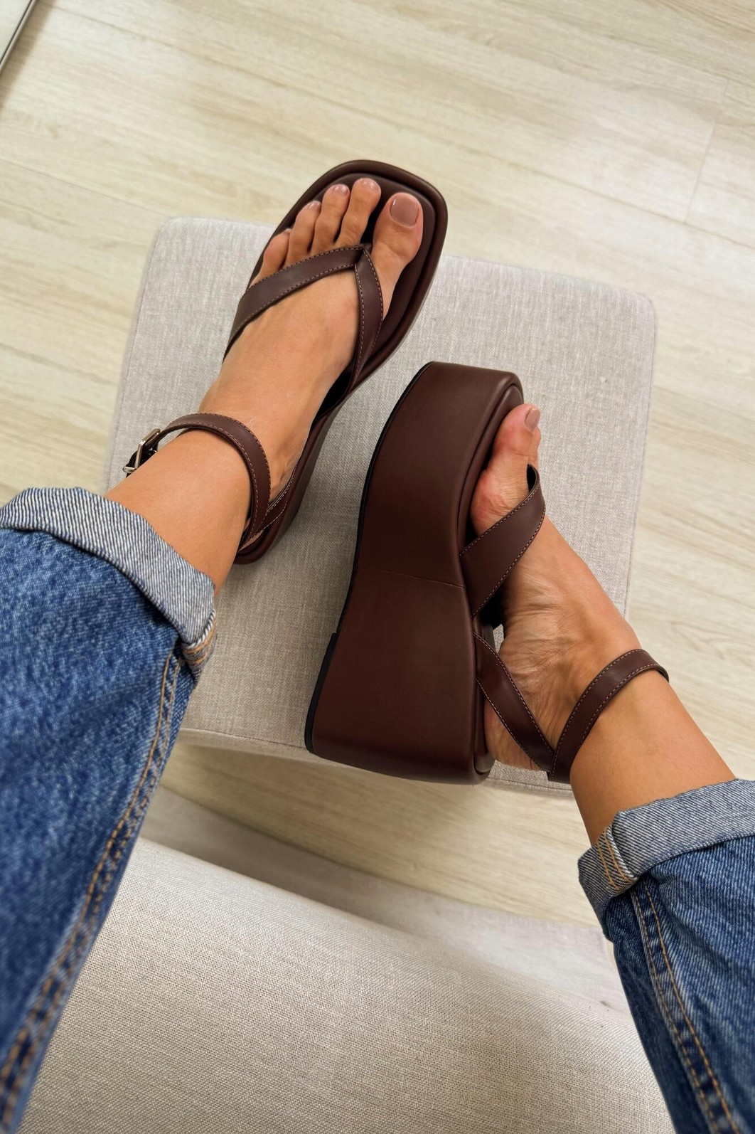 Na cor marrom versátil, essa sandália é ideal para compor looks minimalistas com atitude. Um modelo que transita com facilidade entre produções casuais e sofisticadas, elevando seu visual a novos patamares.