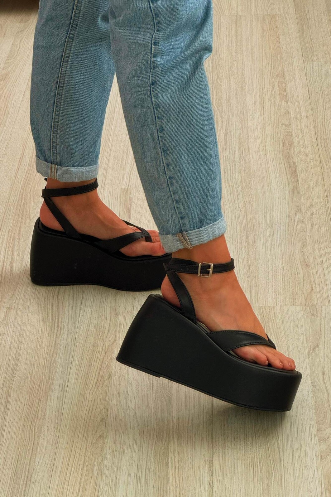 A Sandália Lola Black MIST realça a elegância feminina com um design minimalista aliado à praticidade da plataforma de 10 cm, que garante impacto visual com conforto.