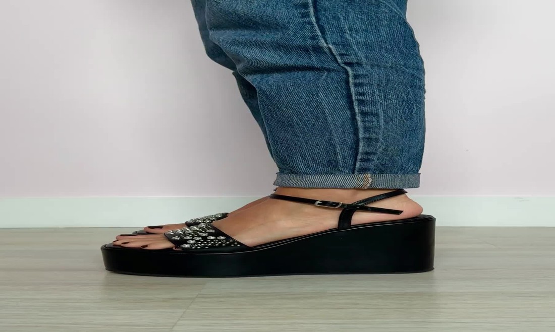 A Sandália Luciana Preta MIST é sinônimo de poder e atitude. Seu design plataforma anabela imponente aliado às tachas prateadas transforma qualquer produção em um verdadeiro statement fashion.