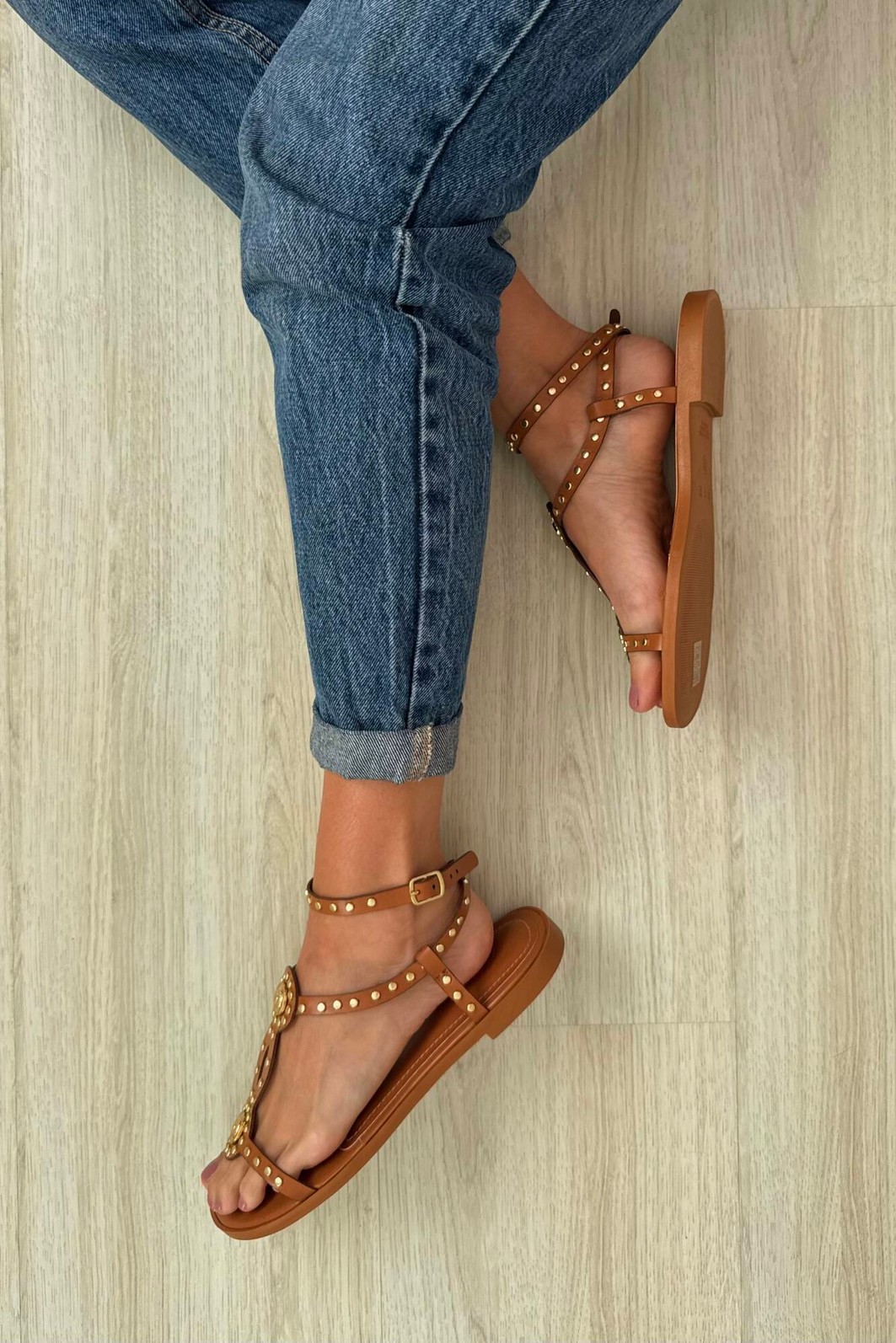 A Sandália Samara Camel MIST é a escolha perfeita para quem busca conforto e estilo. Com design sofisticado inspirado no estilo gladiador, seu destaque são os rebites e adornos dourados que garantem um visual glamouroso e cheio de atitude.