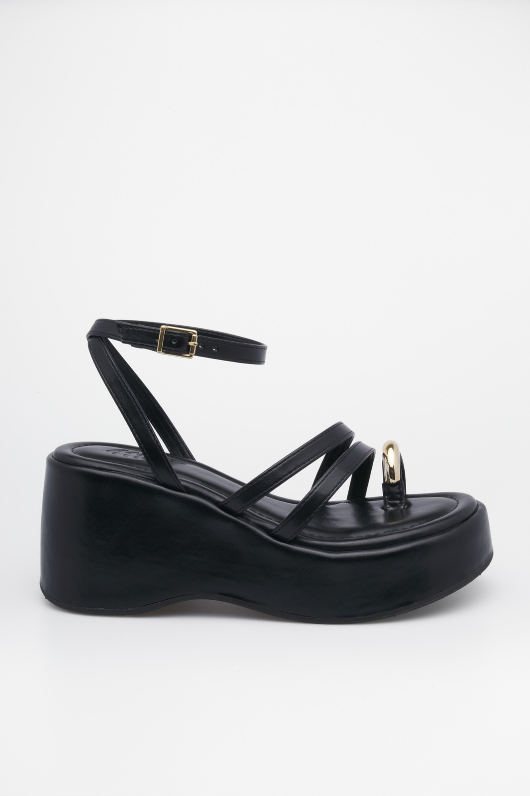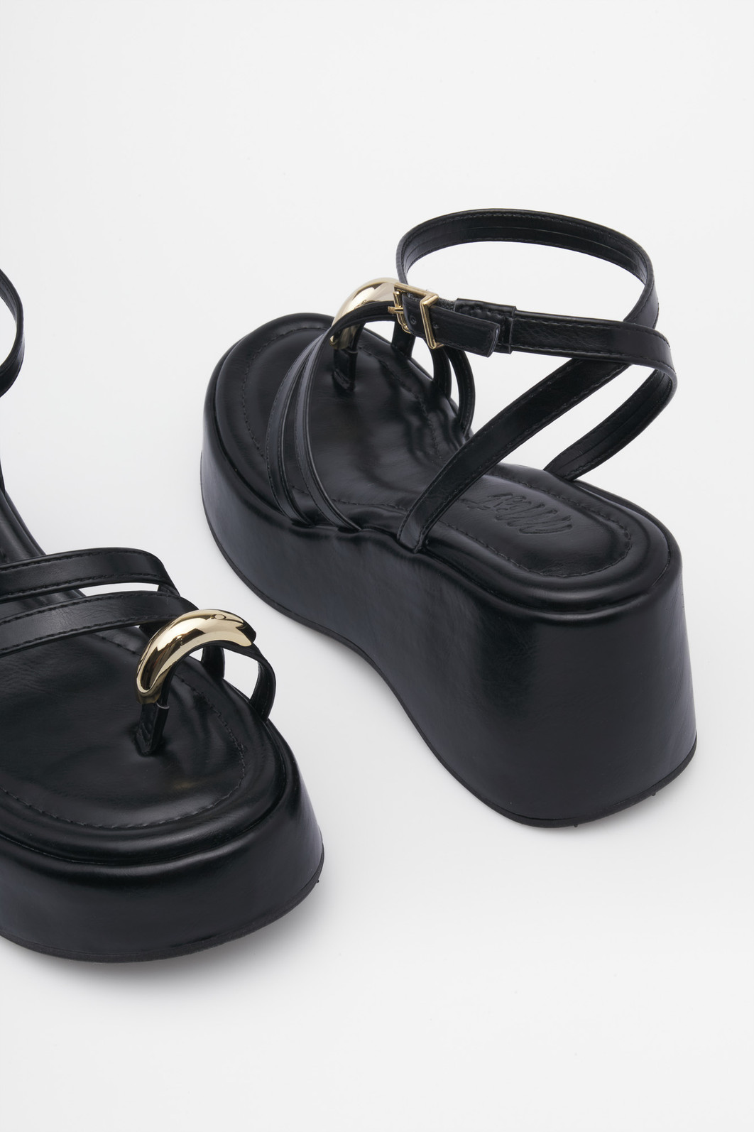 A Sandália Valentina Preta MIST é a união perfeita entre estilo moderno e conforto. Com design marcante e tiras finas delicadas, ela envolve os pés com leveza, enquanto o detalhe dourado no dedo adiciona um toque sofisticado.