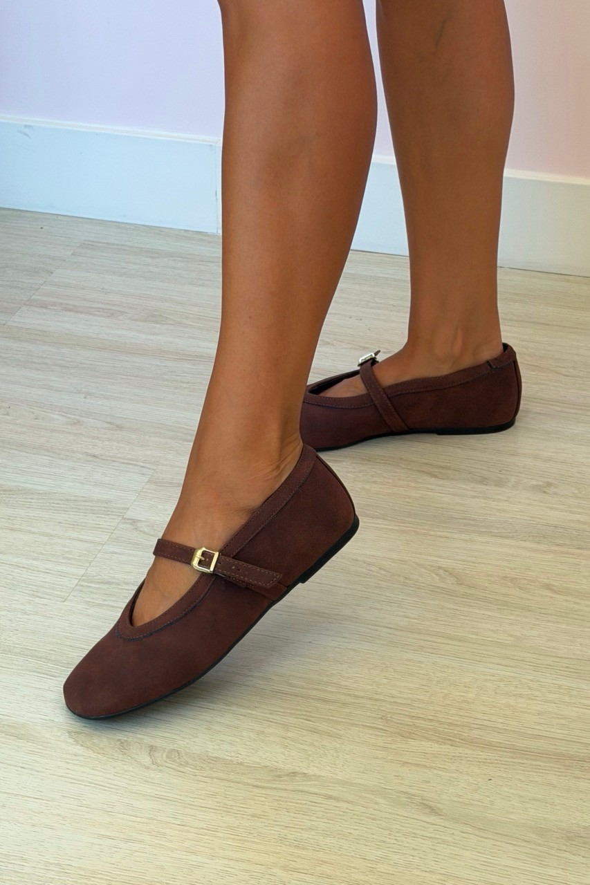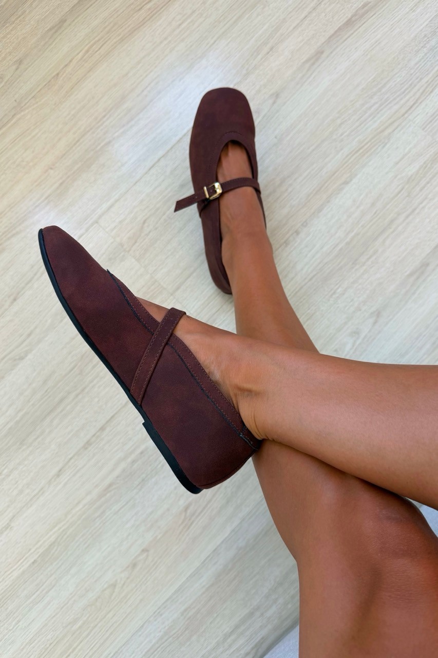 A Sapatilha Dalila Marrom MIST traz o charme do estilo vintage para o look moderno. Inspirada na tendência Mary Jane, une delicadeza e conforto com seu acabamento em camurça aveludada e o destaque da fivela dourada no peito do pé.