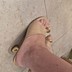Detalhes: Salto escultural dourado, Bico quadrado, Anel dourado na tira