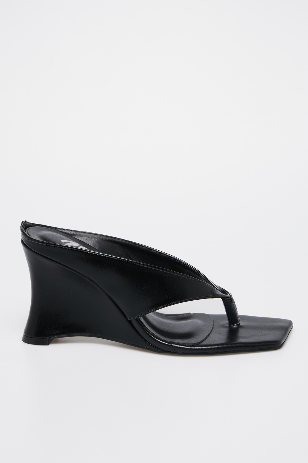 O Tamanco Mel Preto MIST eleva seu estilo com um toque arquitetônico e moderno. Com forte inspiração Y2K, seu salto anabela com design esculpido e o bico quadrado garantem um visual clean, super atual e cheio de personalidade.