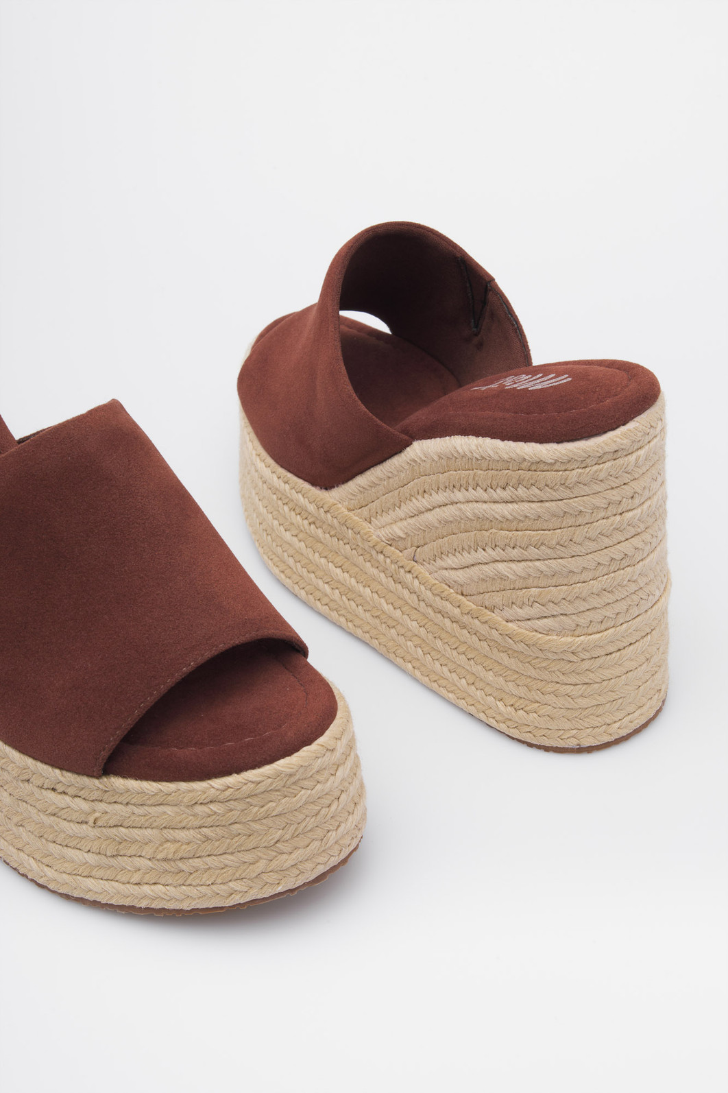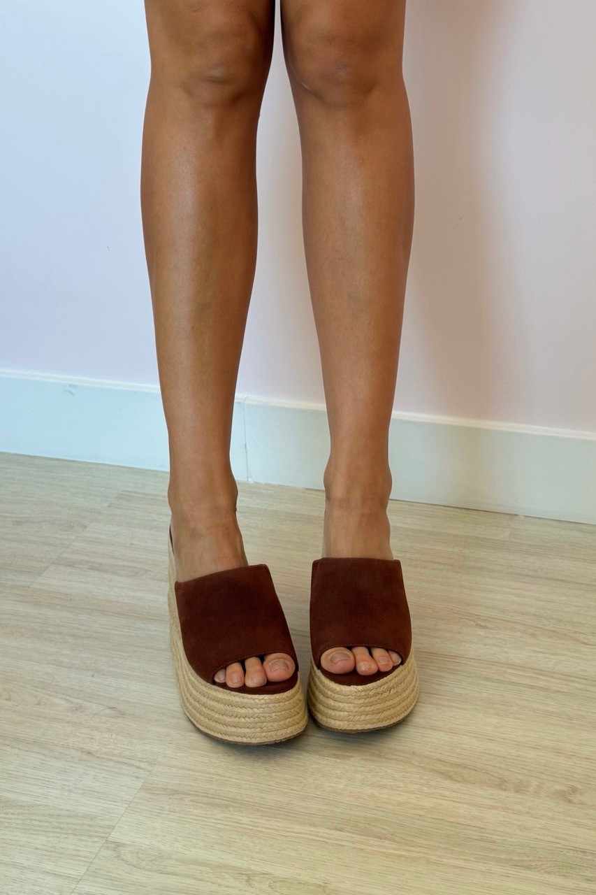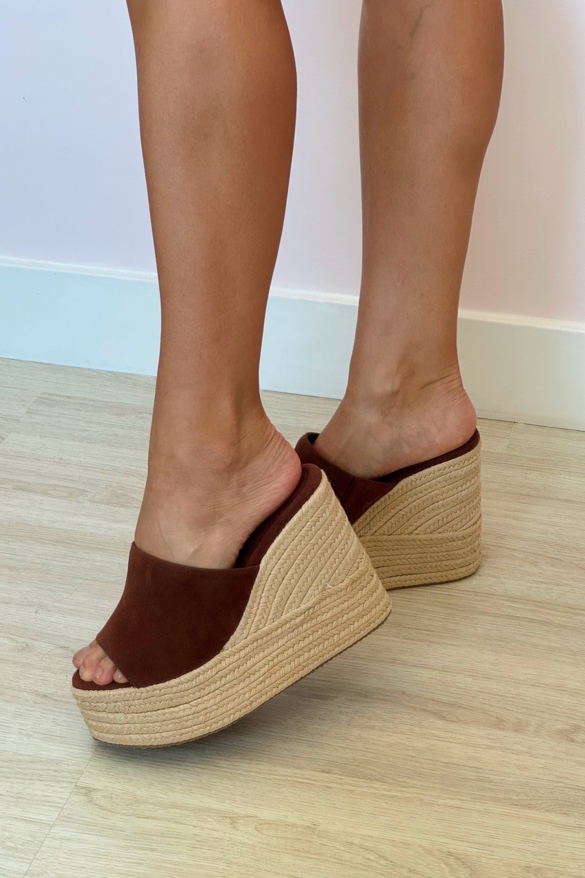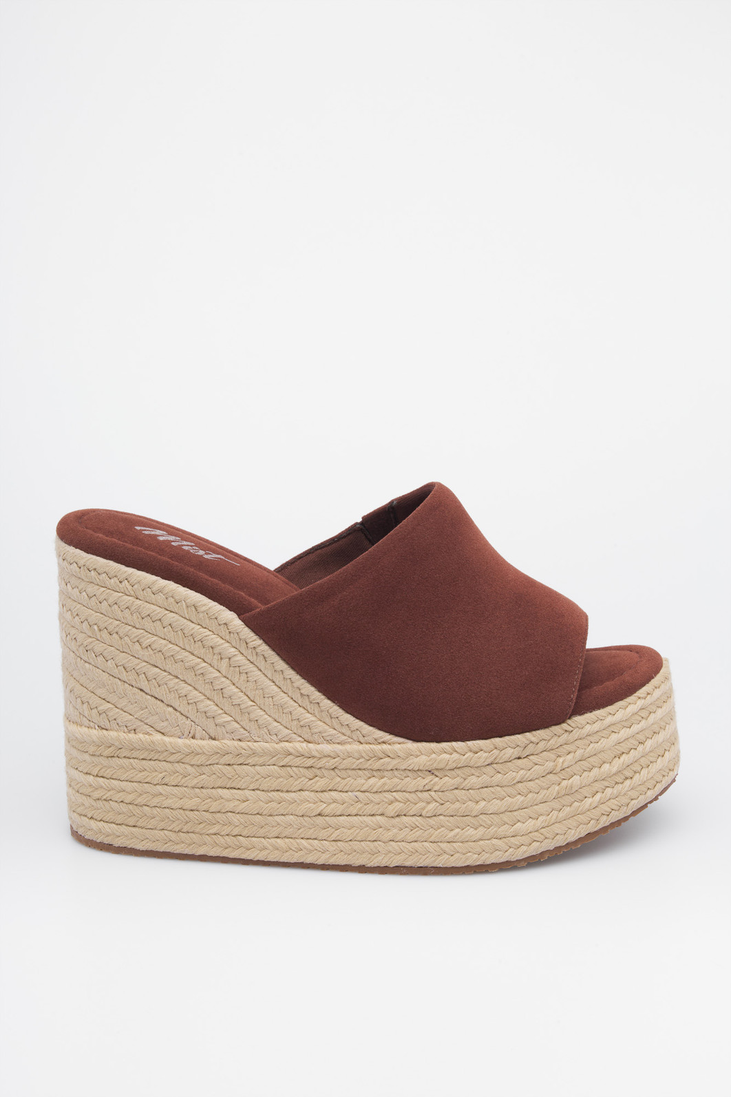 A plataforma cria uma silhueta alongada sem abrir mão da estabilidade. O tom Terra adiciona um ar sofisticado e versátil, combinando facilmente com jeans ou vestidos. A aposta certa para traduzir o verão em forma de elegância.