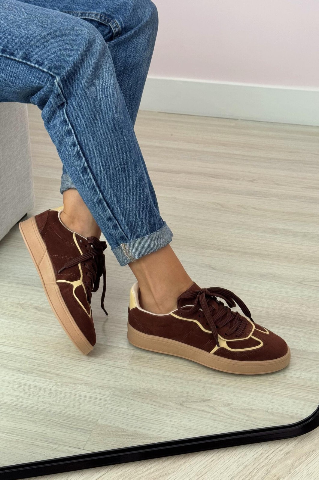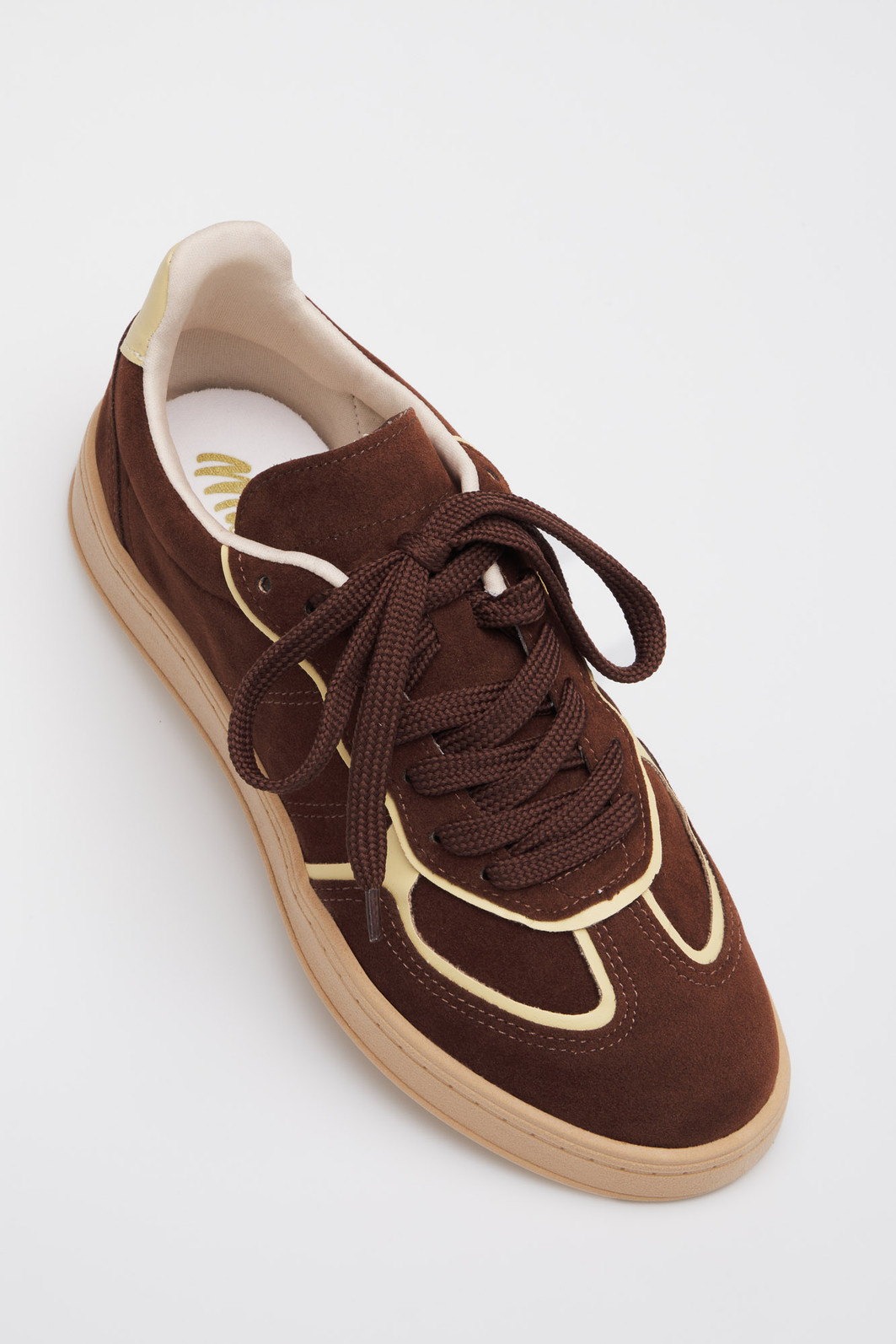 O Tênis Ana Marrom MIST é a personificação do casual chic em tons neutros. Com um design harmonioso que mescla camurça marrom e detalhes em creme, ele garante máxima versatilidade para suas produções.